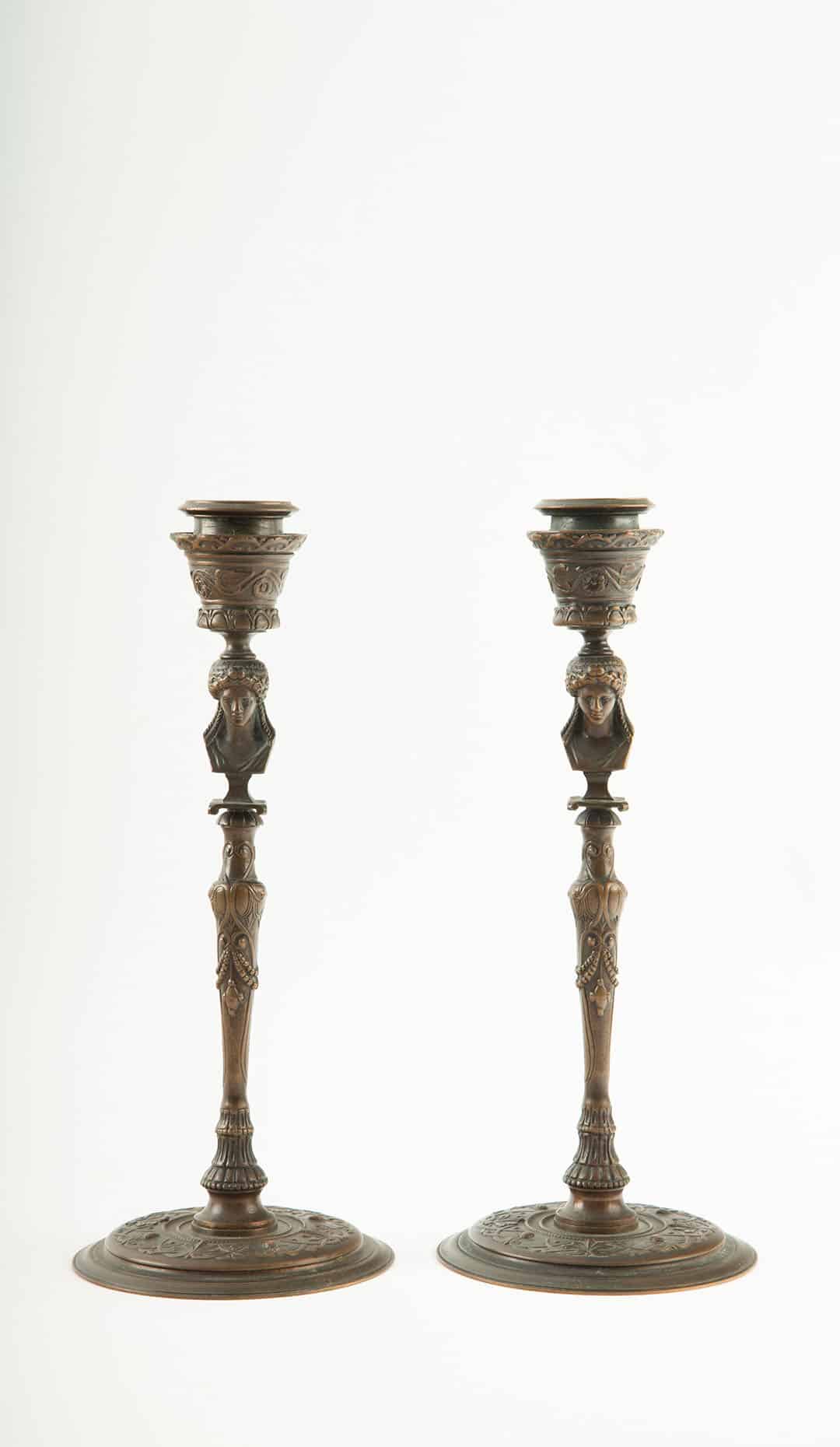 19th Century Full Body Greek Revival Caryatid Candlestick, Pair
