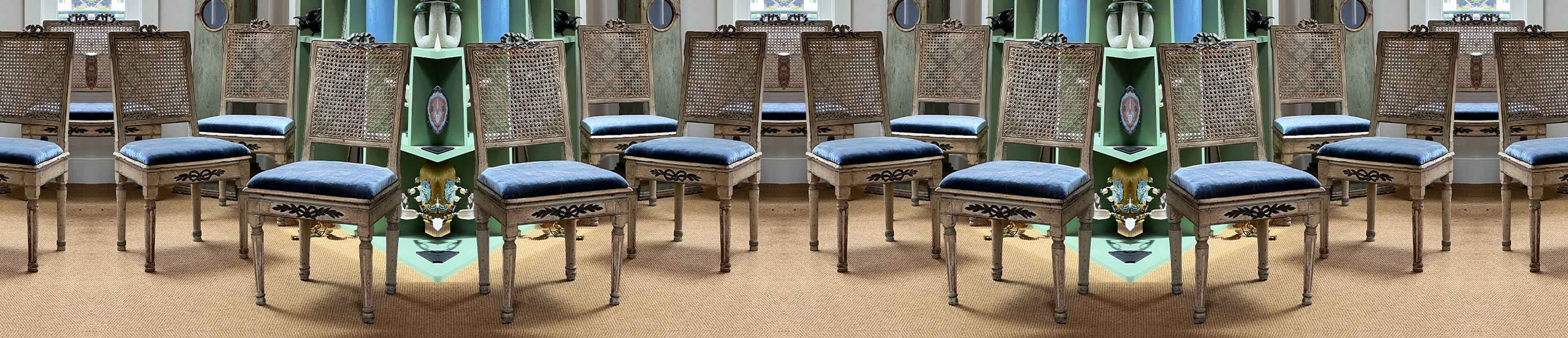 Blue Peacock Rattan Side Chair by Creel and Gow