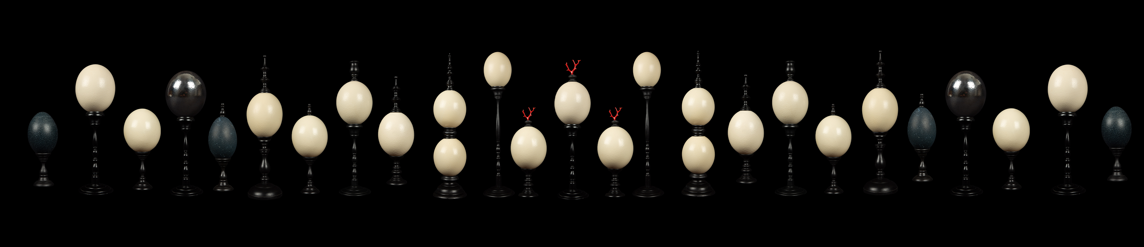 Mounted Ostrich Egg, Tall with Coral Finial, 18.5″ H