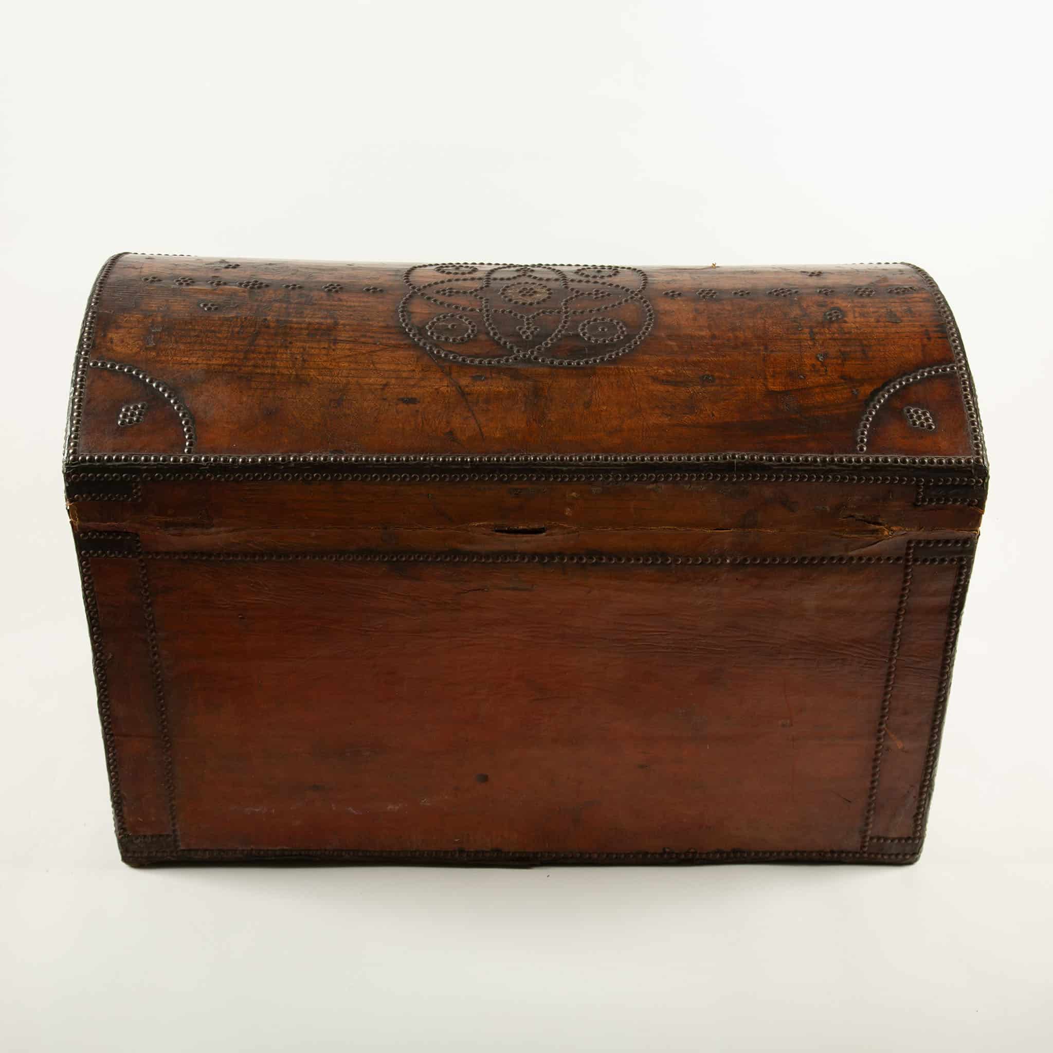 18th-Century French Leather-Clad Domed Coffre (Trunk) with Studded Decoration