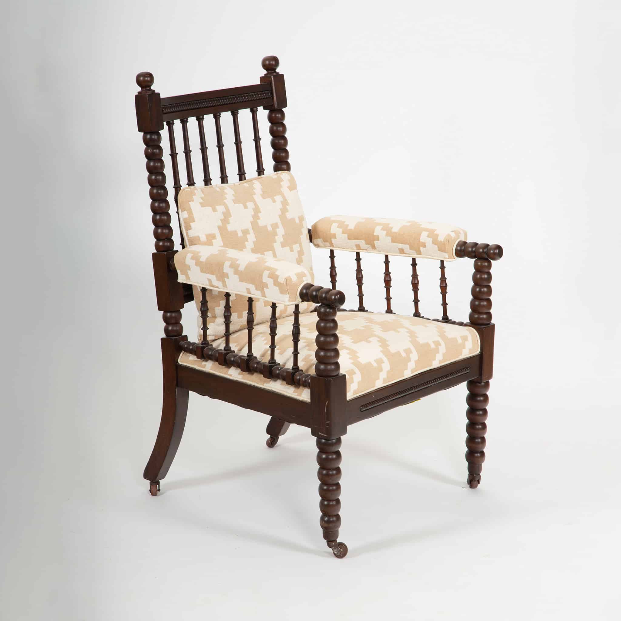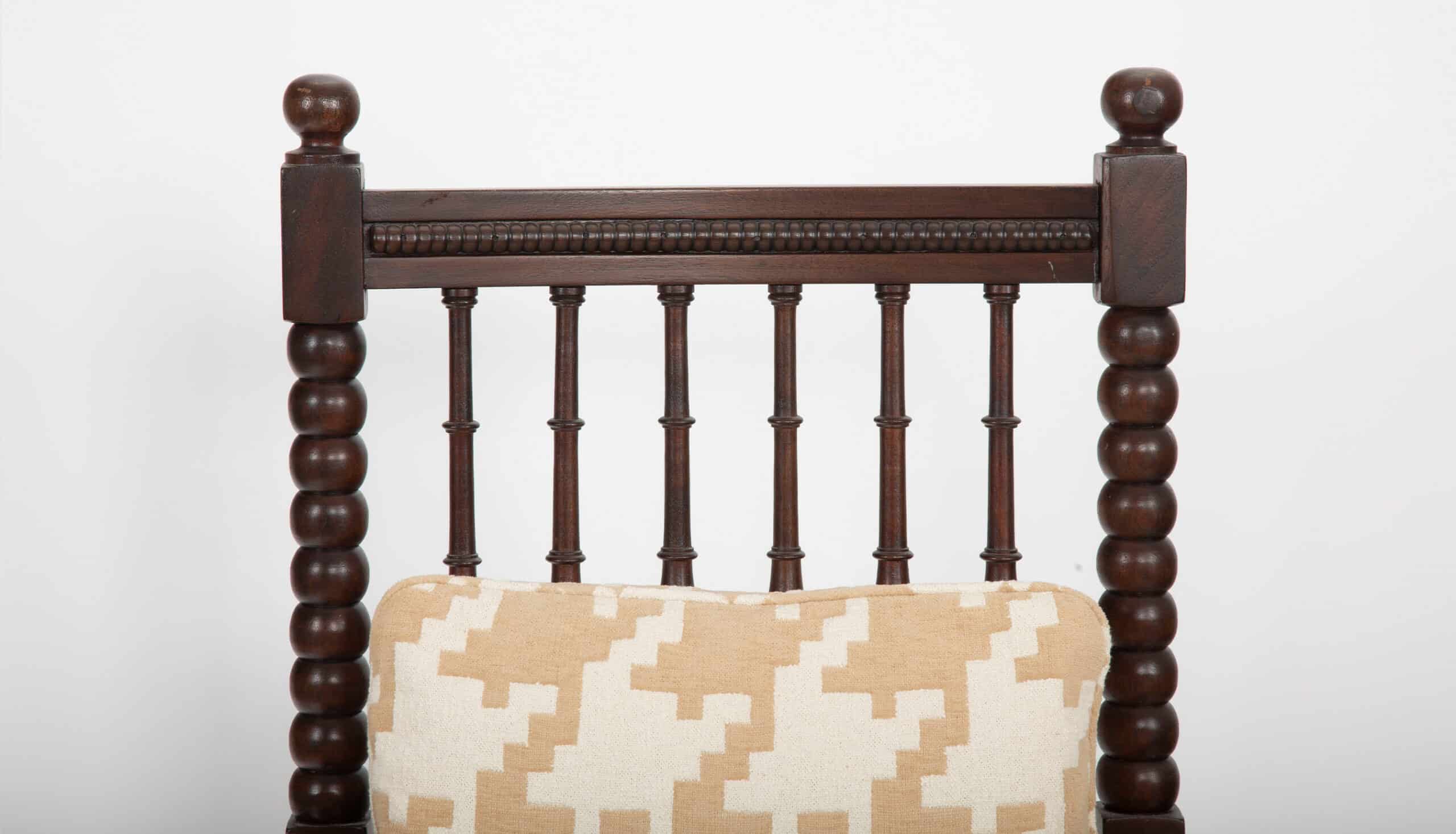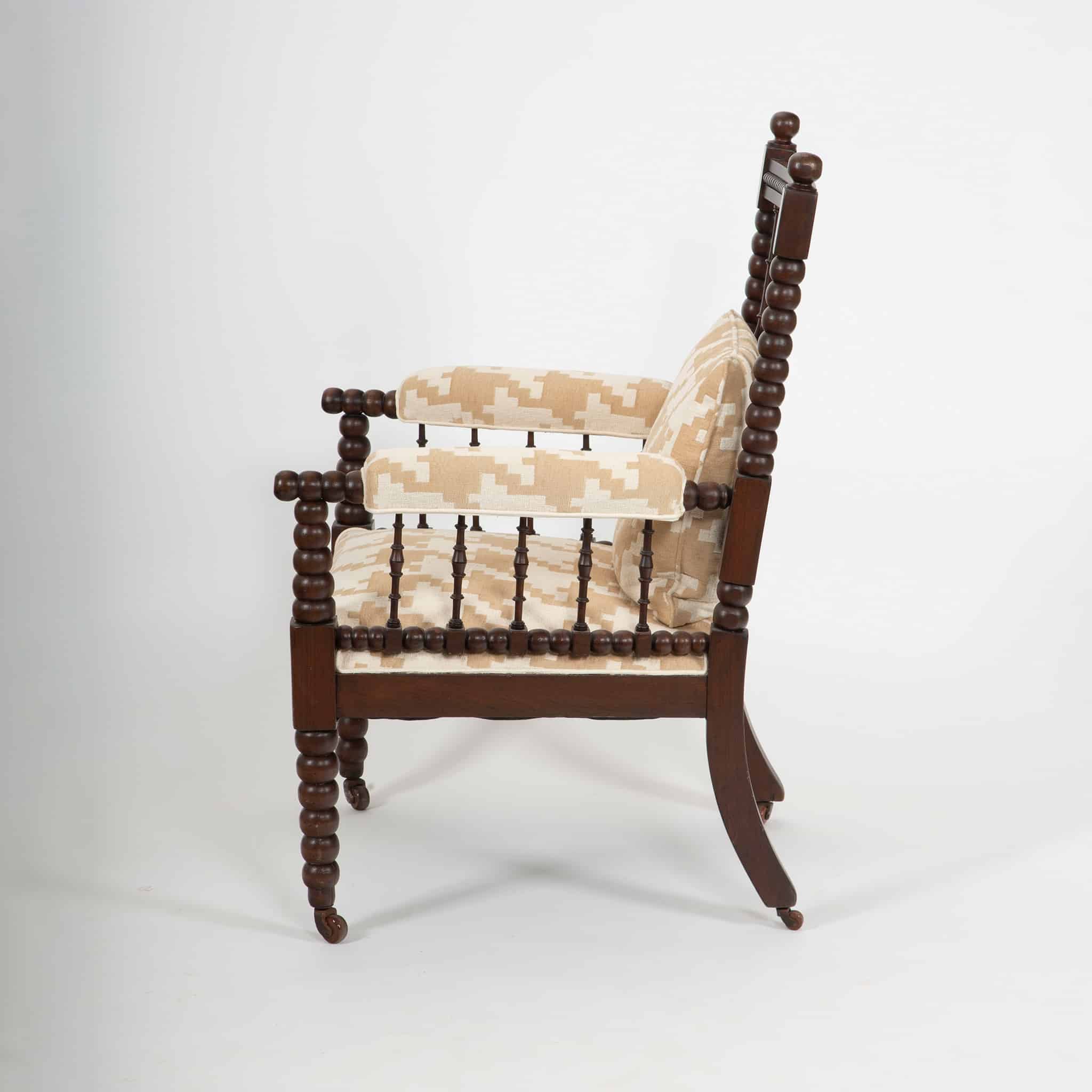 Bobbin furniture enjoyed renewed popularity in England during the mid- to late 19th century, reflecting the Victorian taste for historic revival styles combined with solid craftsmanship and domestic comfort. Though the maker is unidentified, the quality of carving and proportions suggest production by a skilled English workshop.
