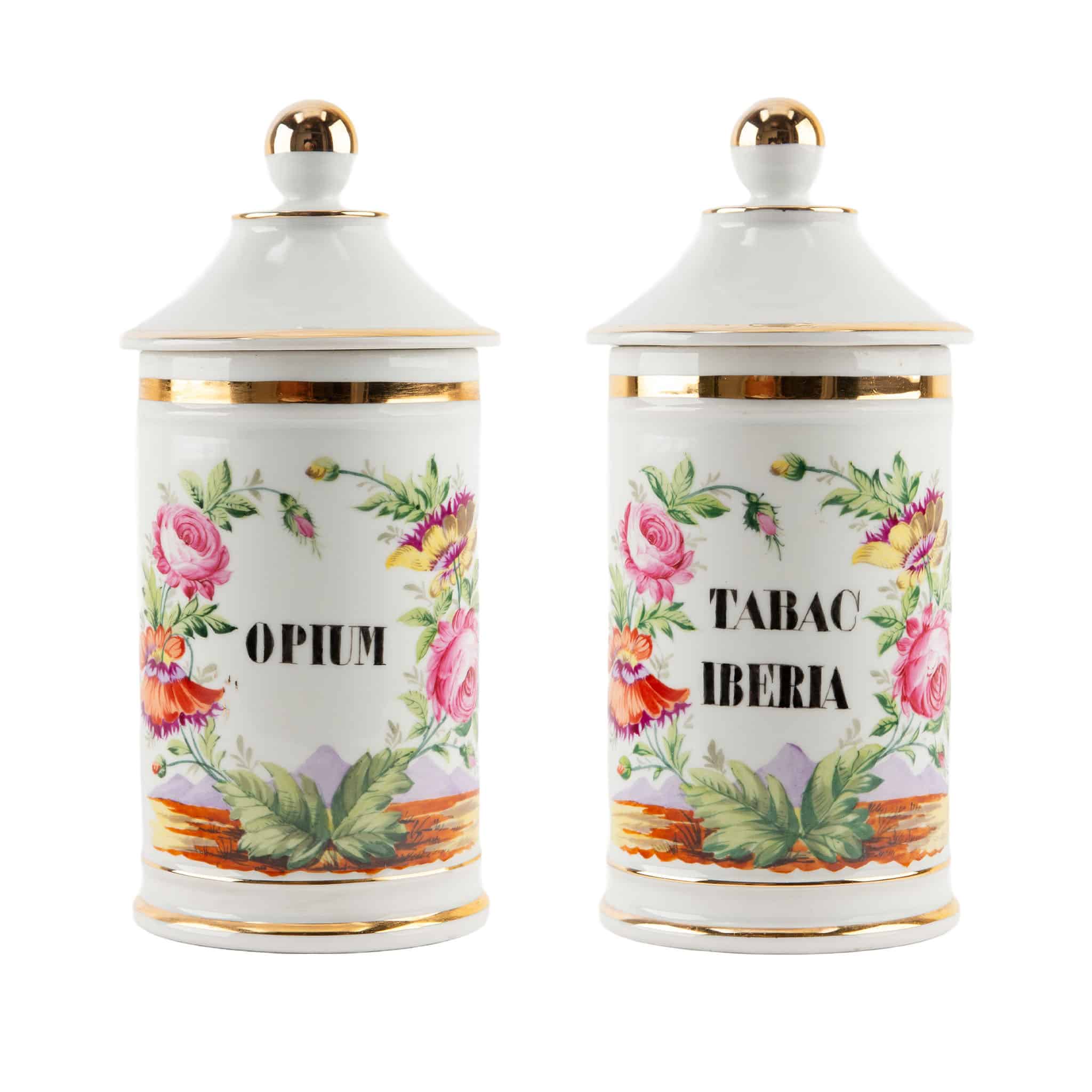 Antique 19th C French Apothecary Jars with Hand-Painted Neoclassical Decoration