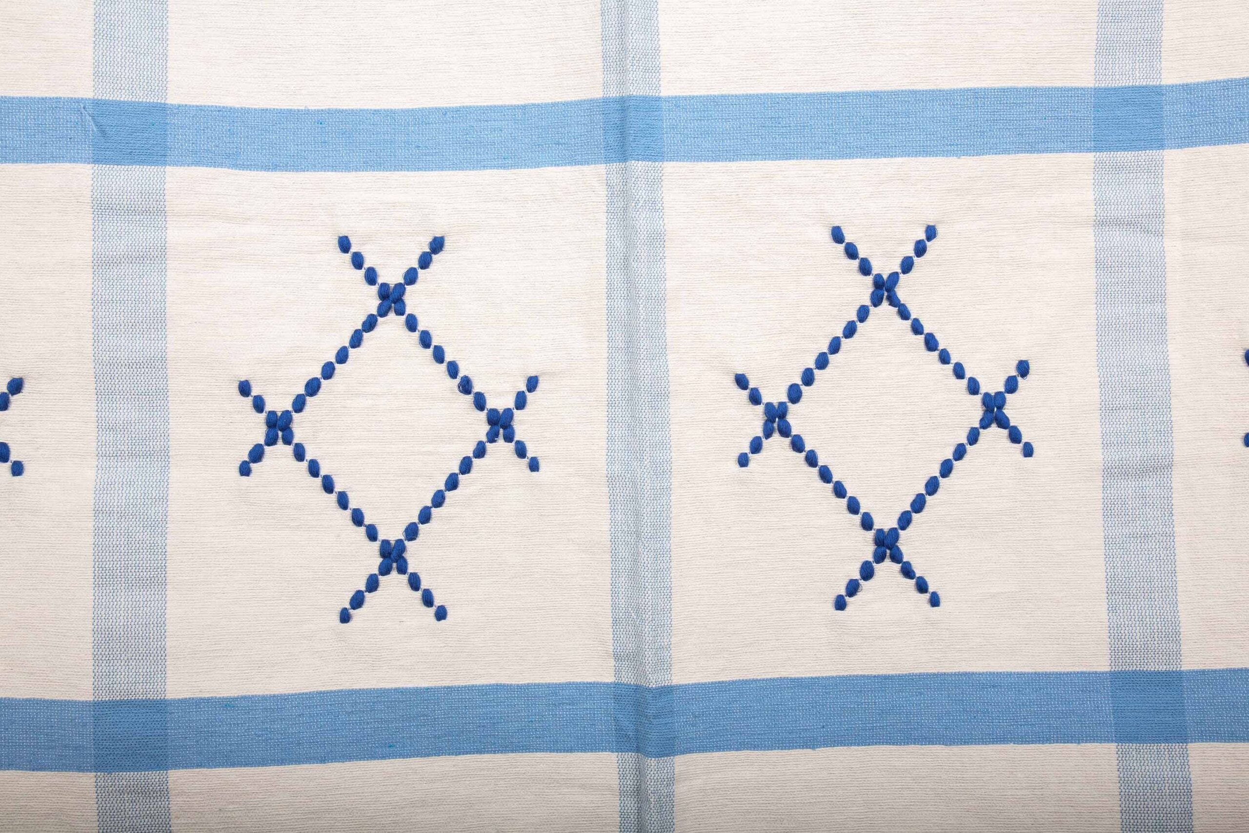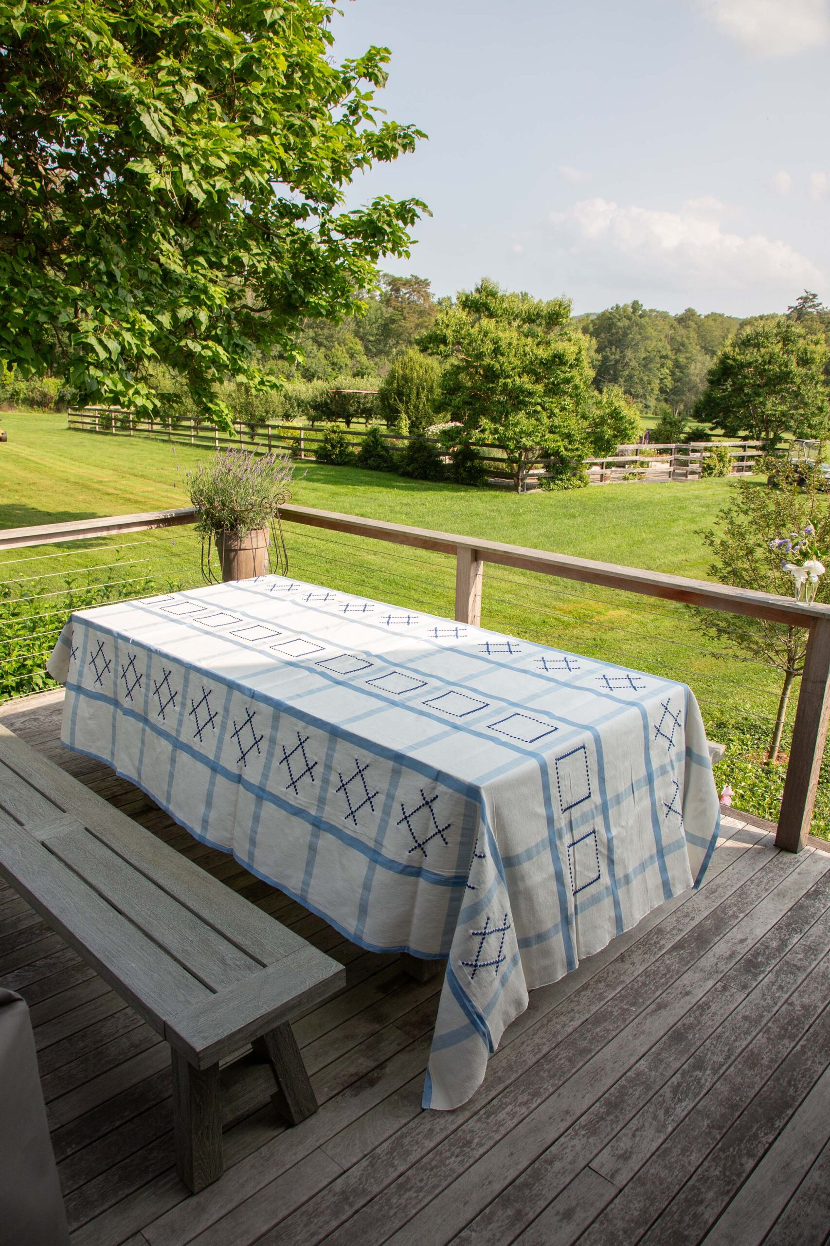 Our Blue Check Tablecloth is beautiful addition to any dining table. Hand woven with 100% cotton by skilled artisans in Morocco exclusively for Creel and Gow. Available in three different sizes, including a small square measuring approximately 5.75' x 5.75', a large square measuring approximately 7.5' x 7.5', and a large rectangle measuring approximately 9' x 6.5', there's a perfect fit for any table setting.