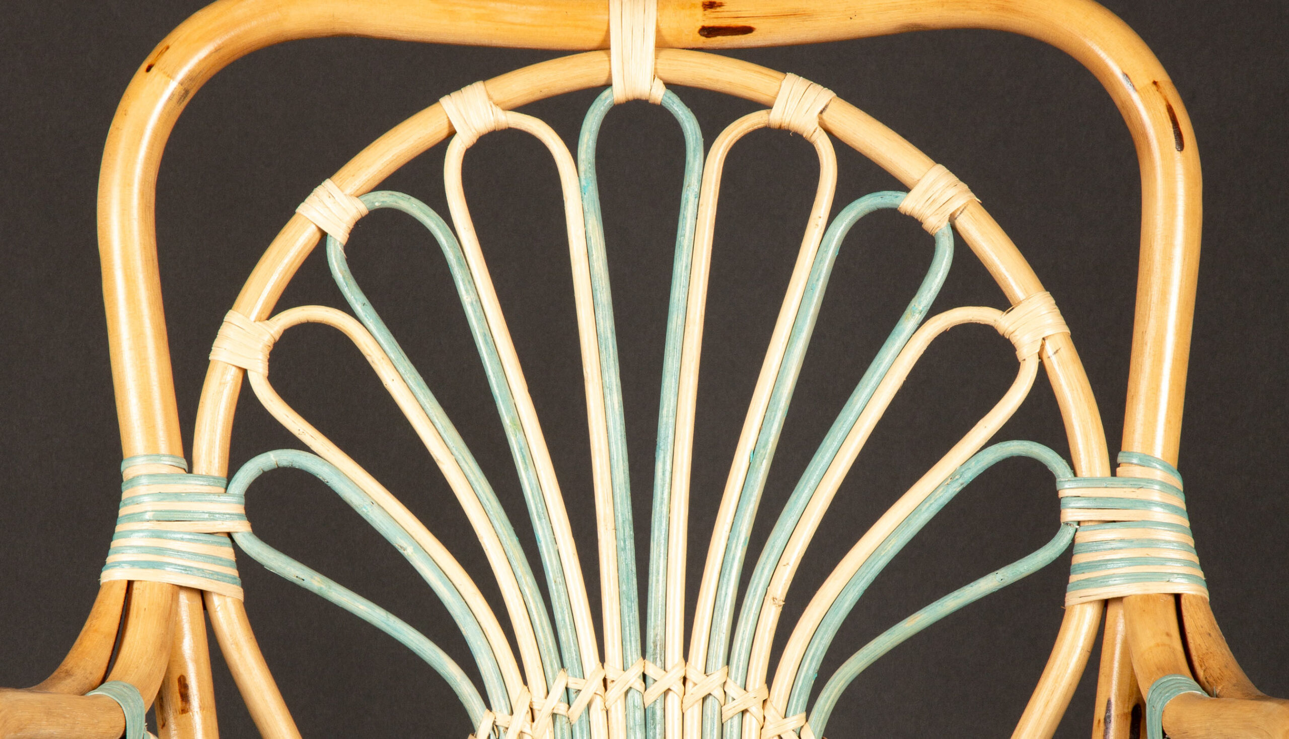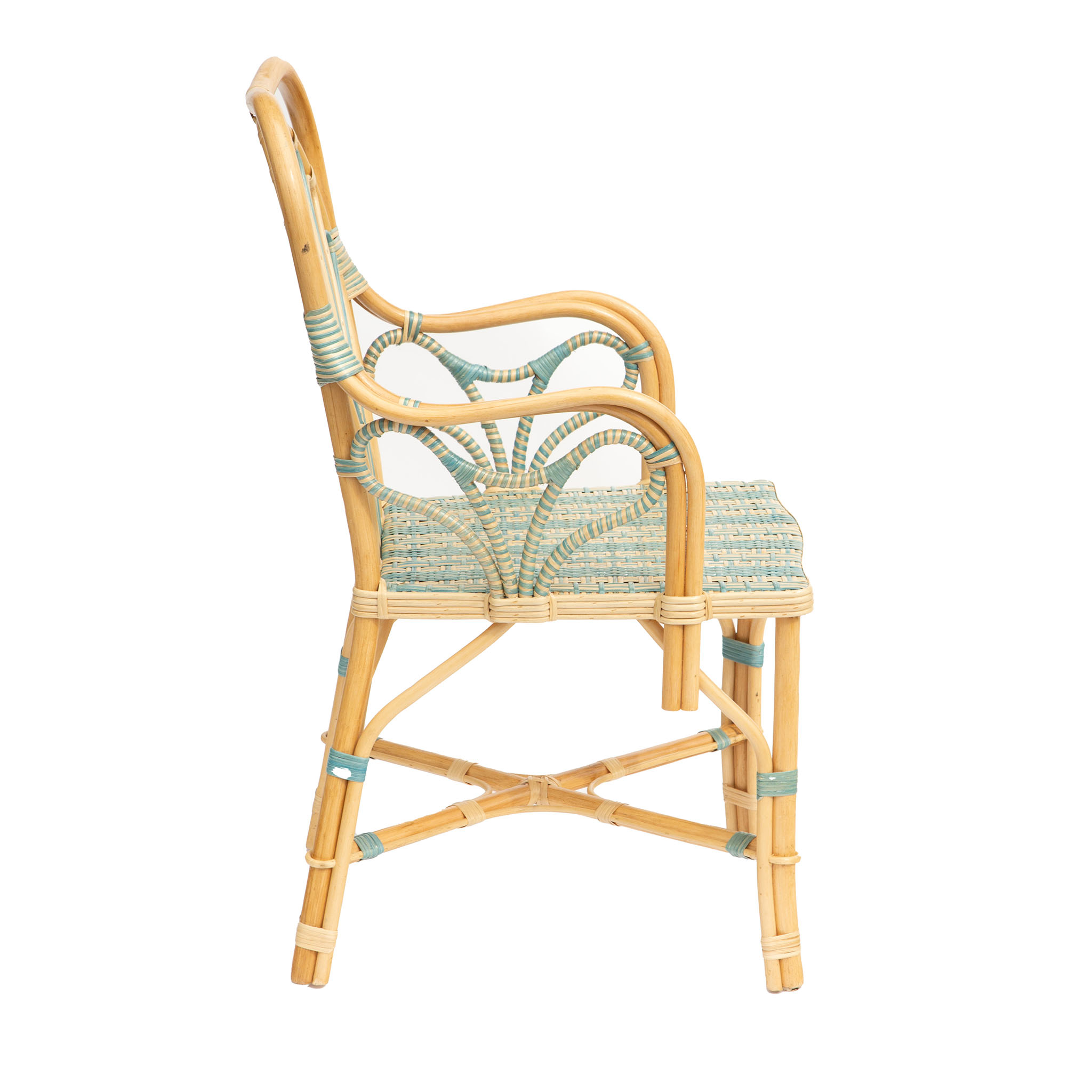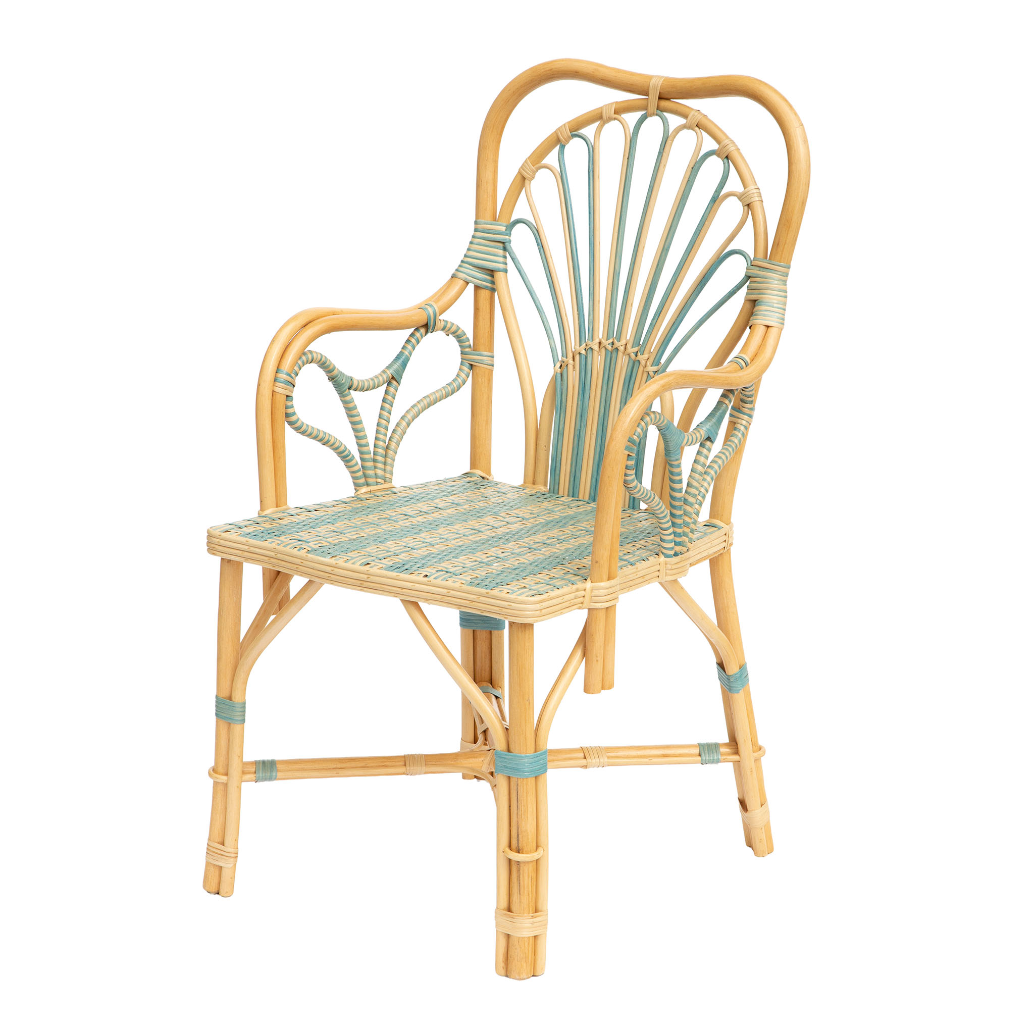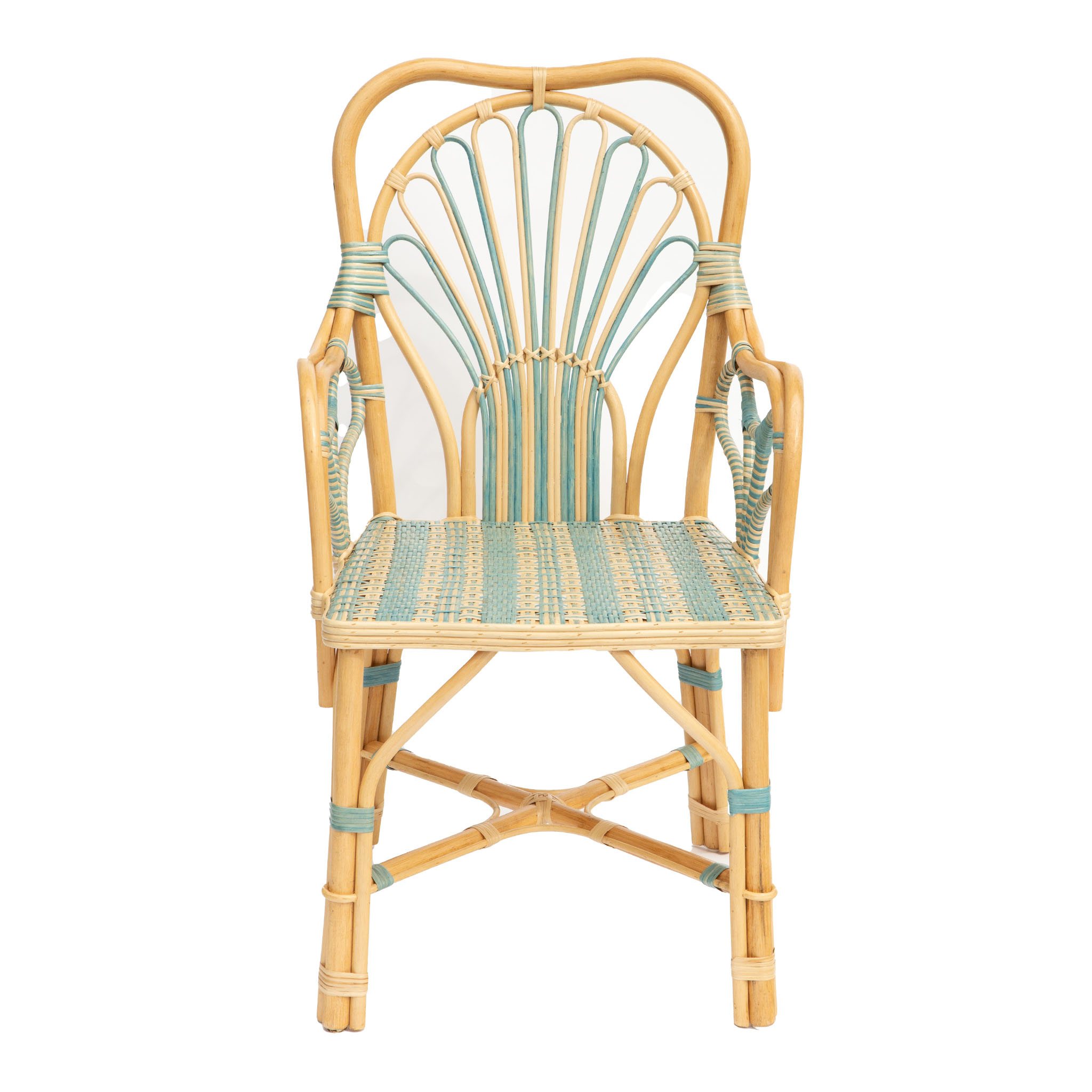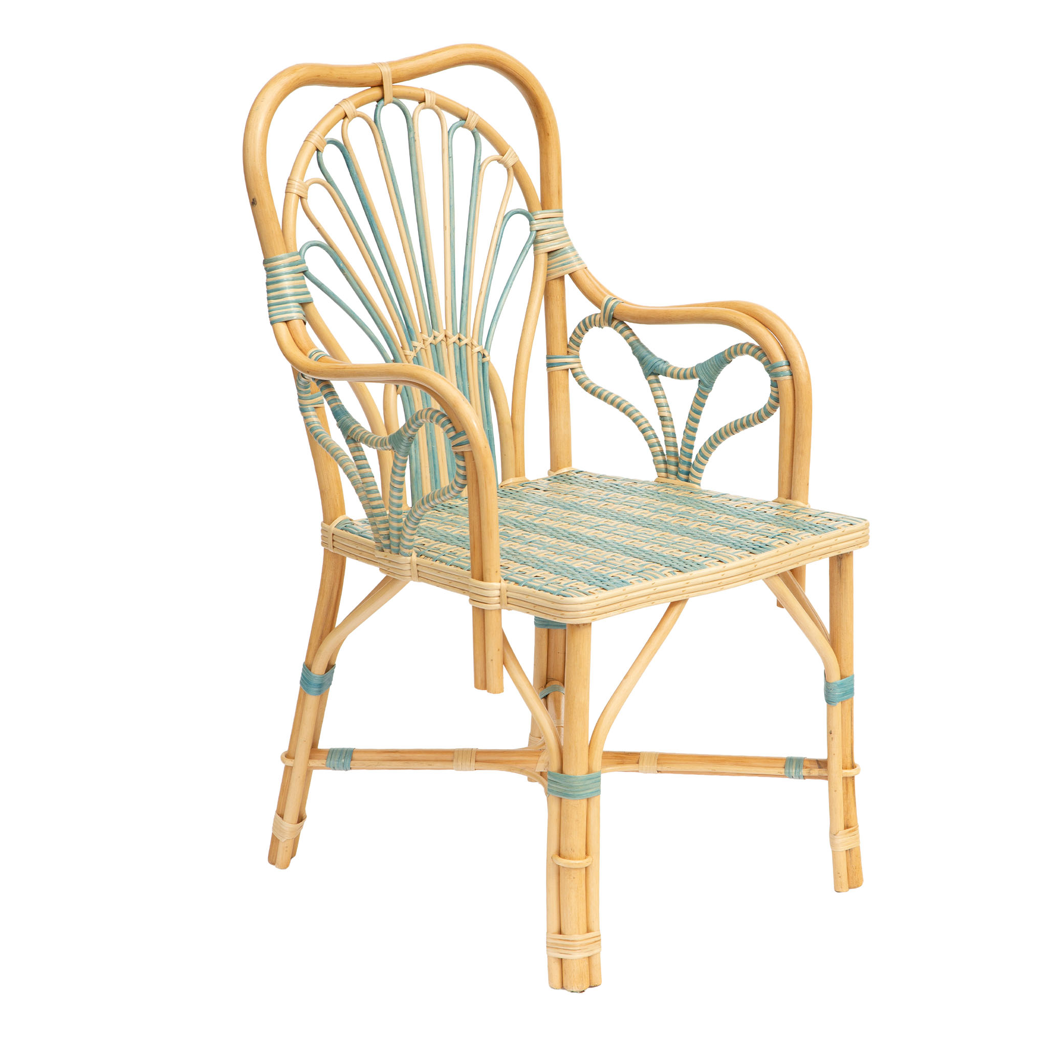 Blue Peacock Rattan Arm Chair by Creel and Gow
