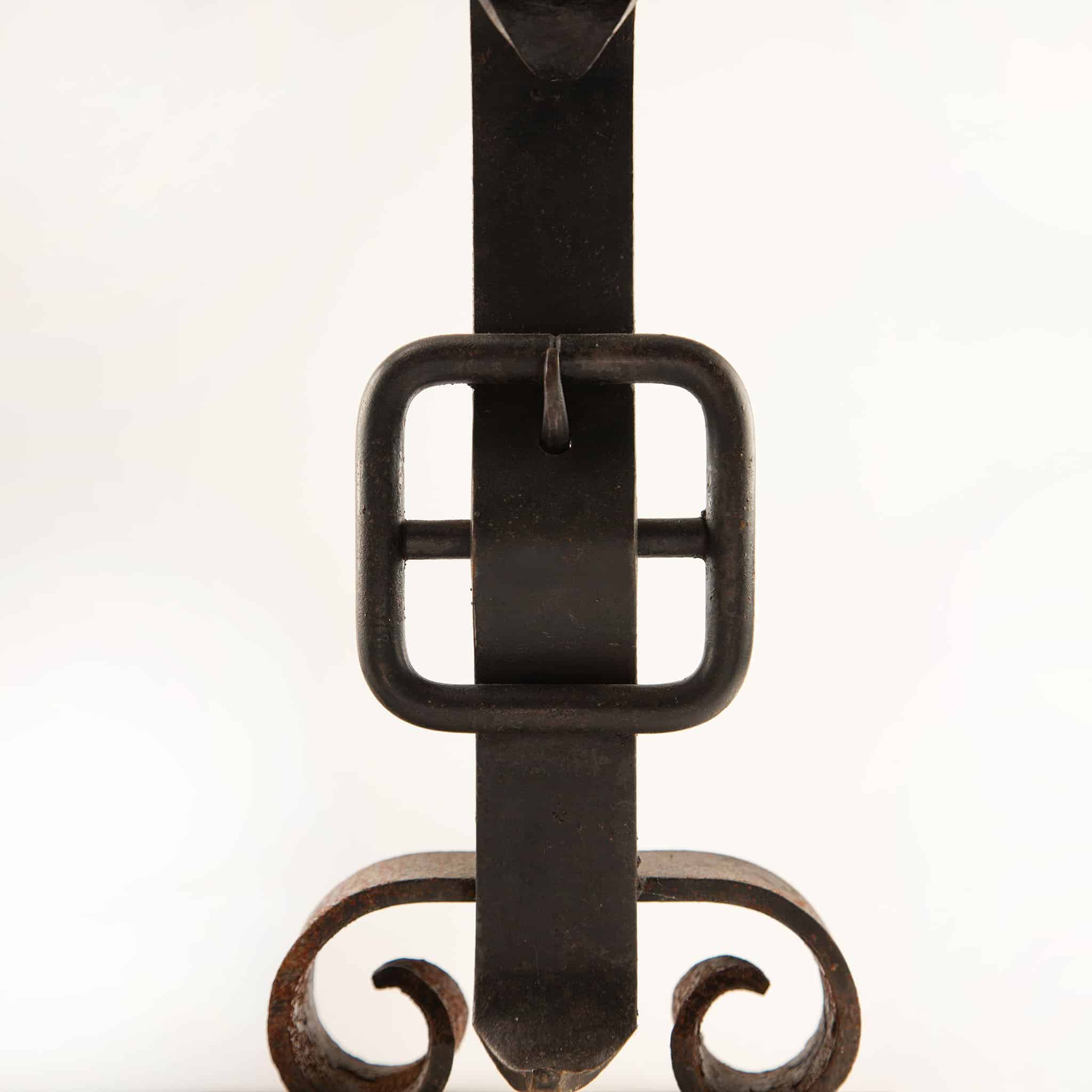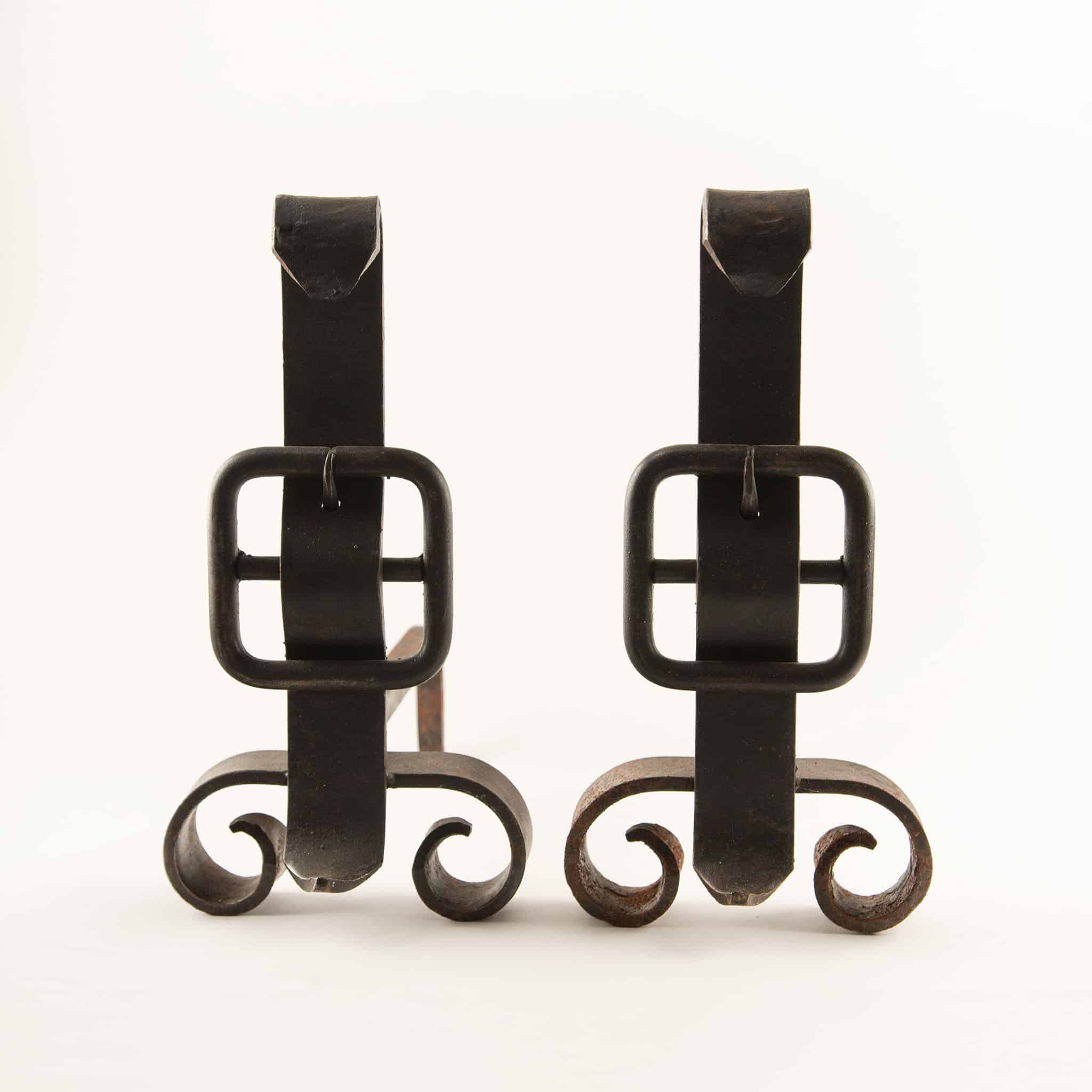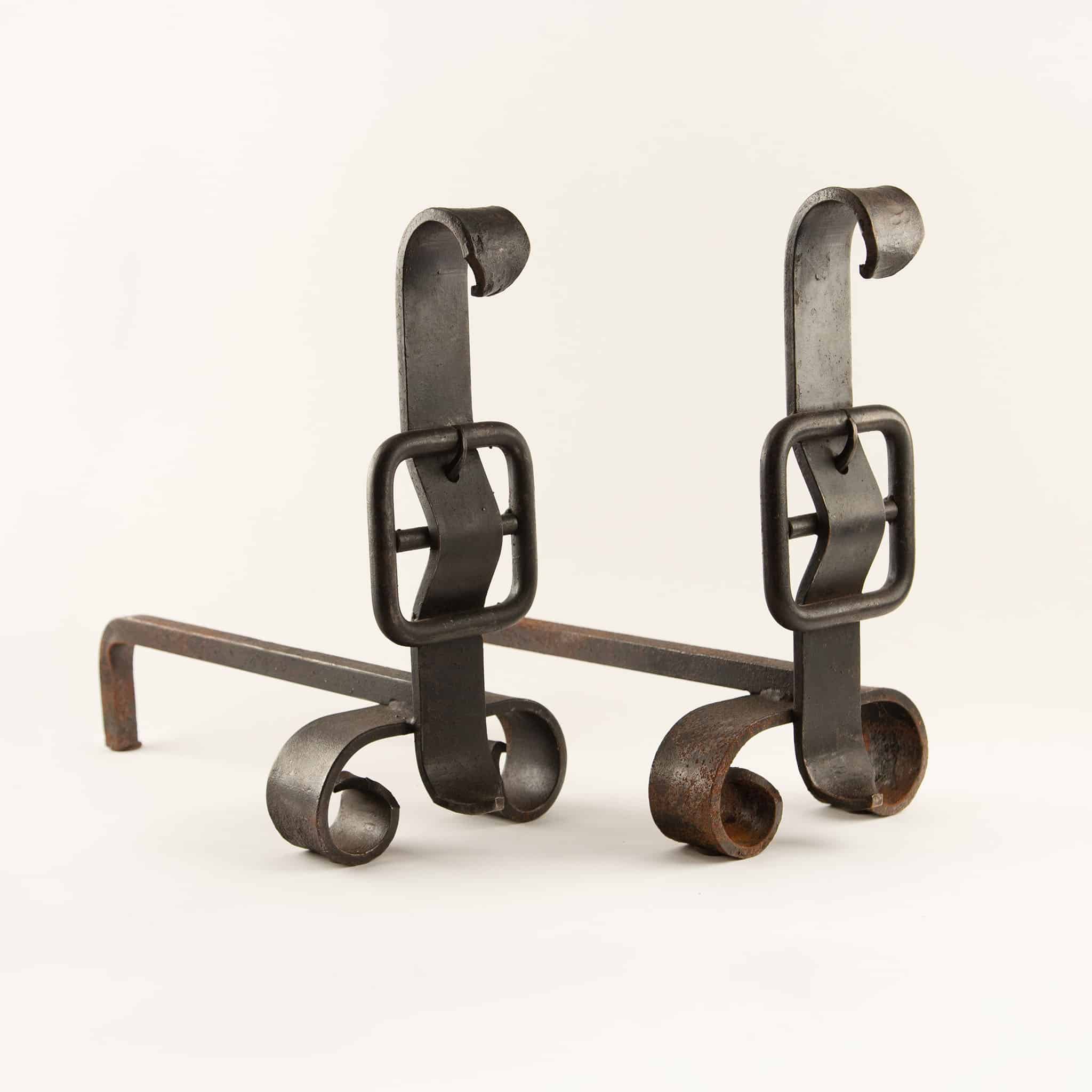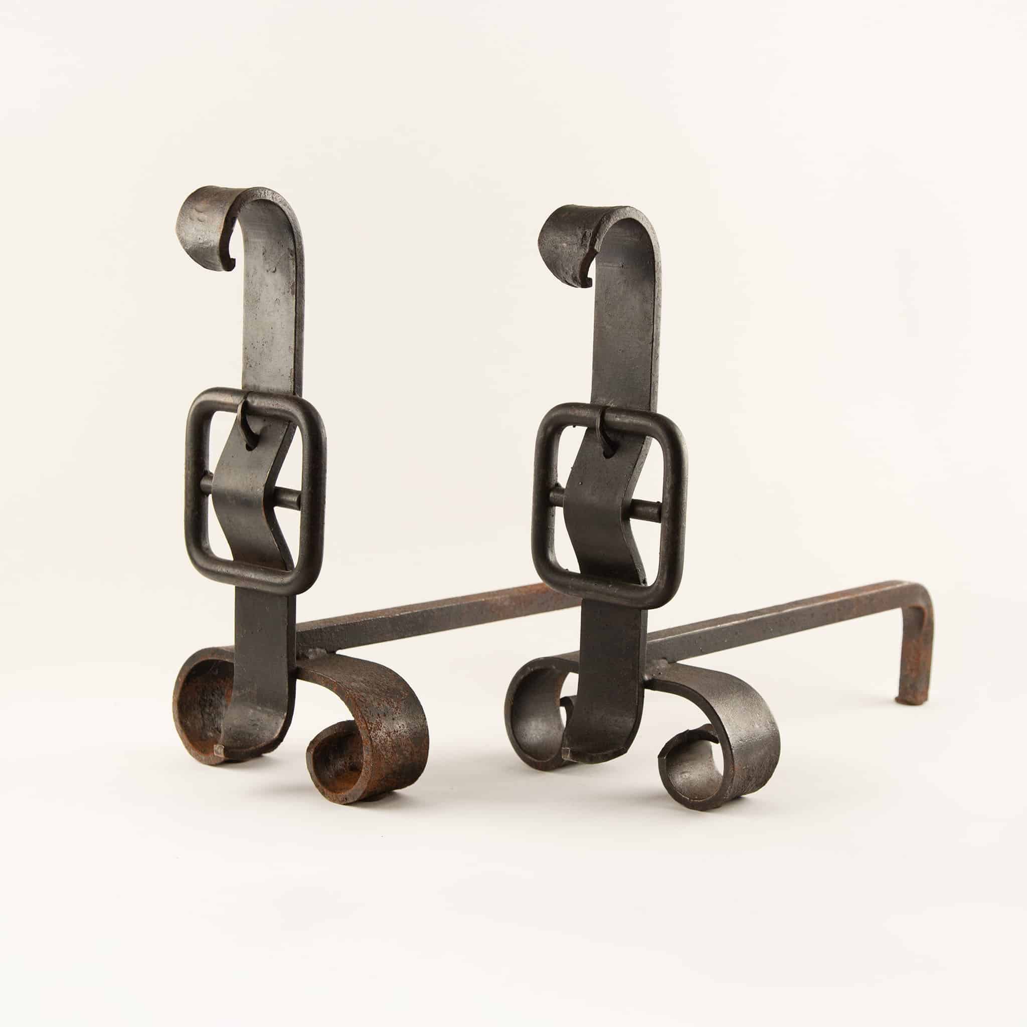 Pair of Wrought-Iron “Buckle” Andirons, 19th Century
