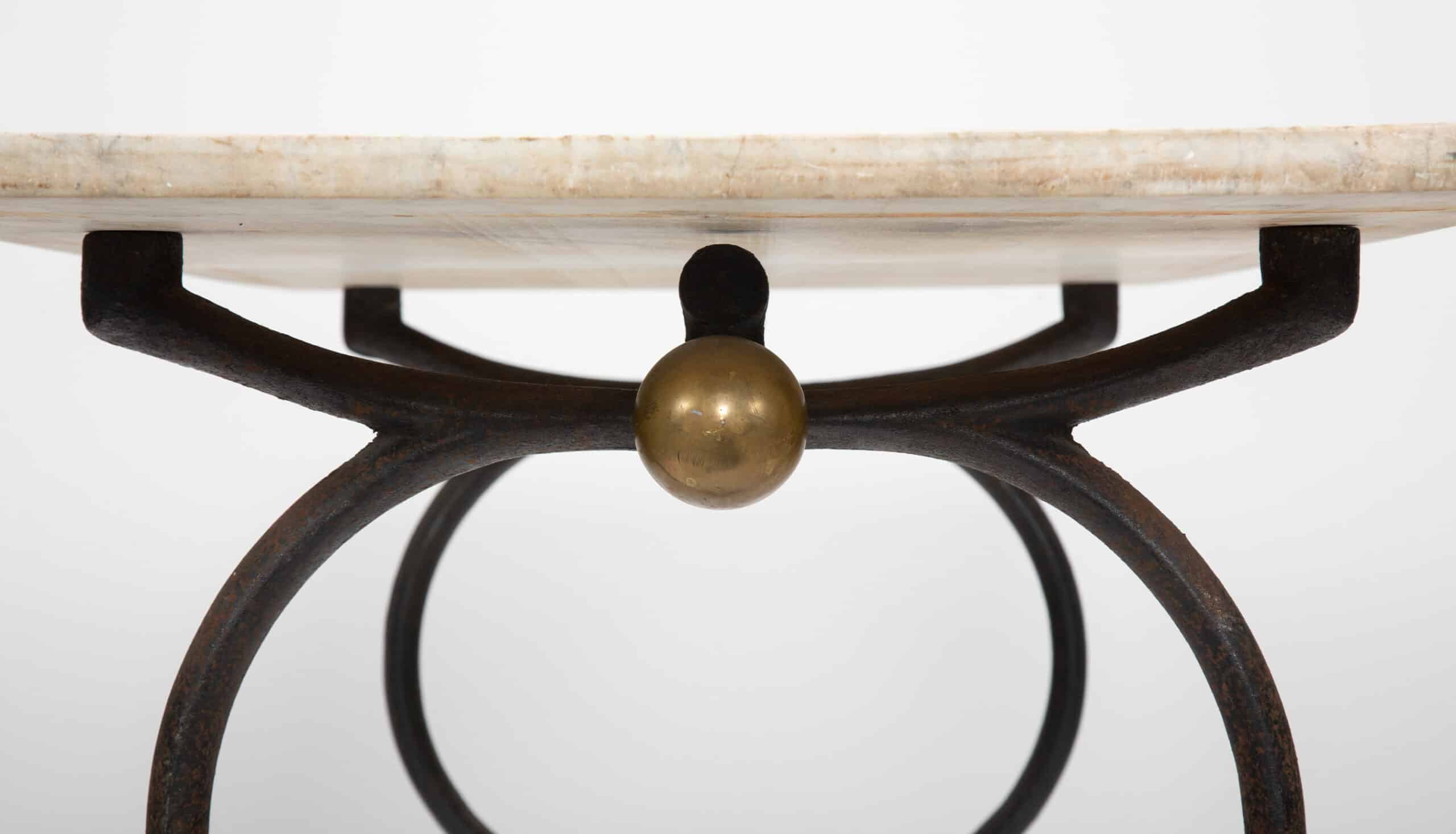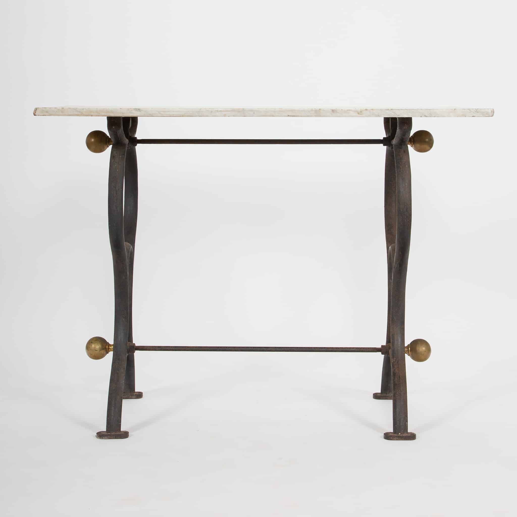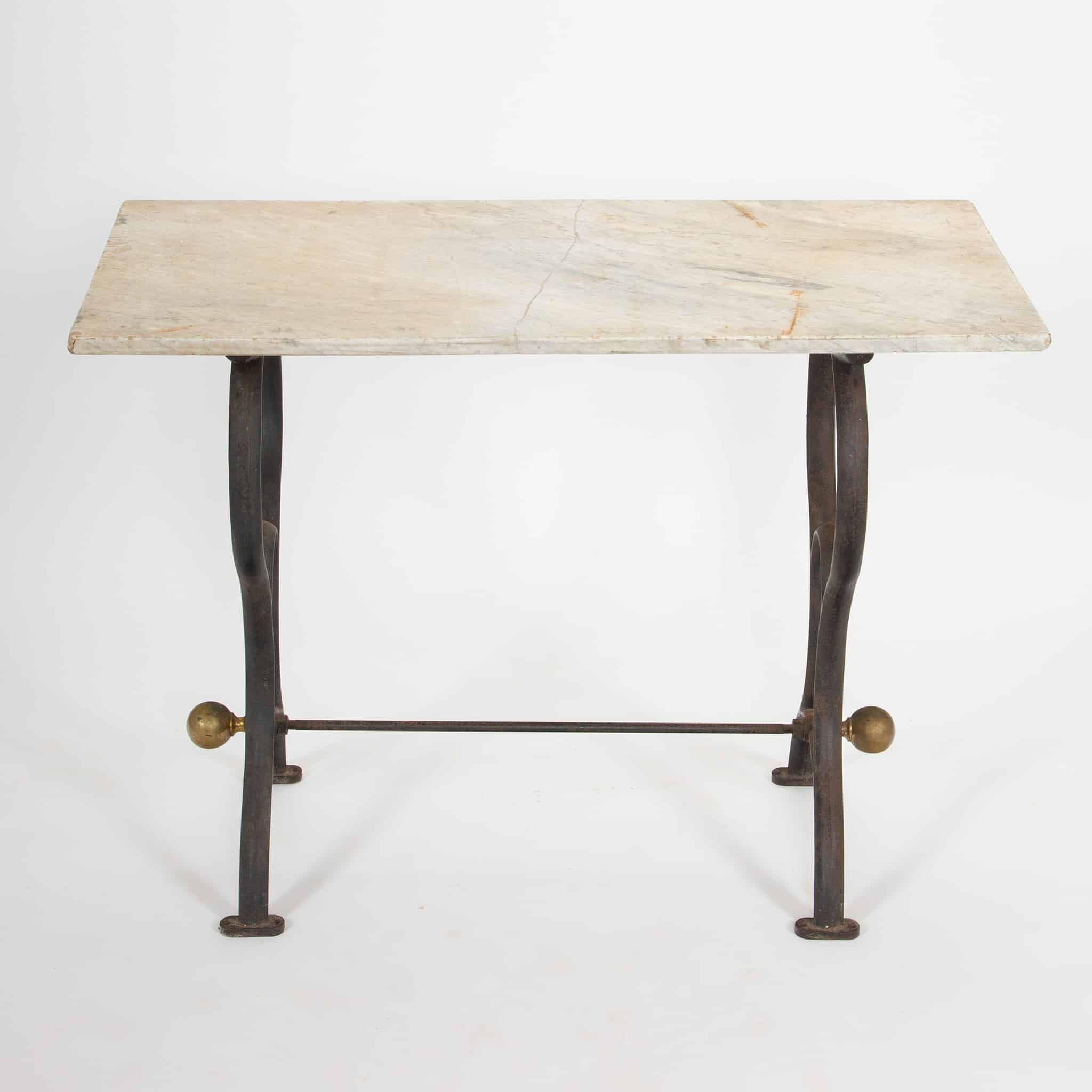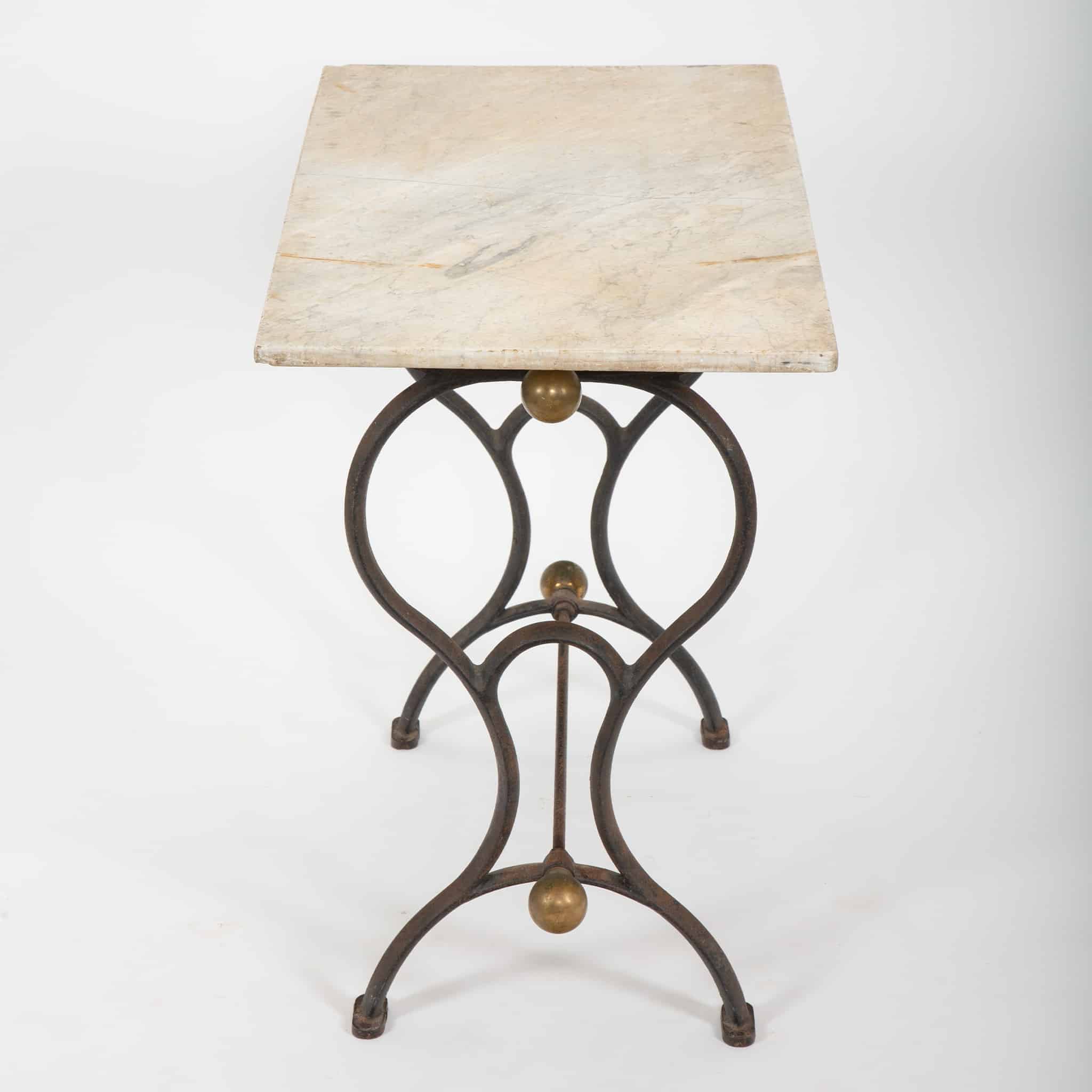 The table retains a pleasing, time-worn surface throughout, with age-appropriate patination to the iron and gentle wear to the marble consistent with long use. Versatile in scale, it lends itself equally well as a console, center table, or occasional table in both traditional and contemporary interiors.