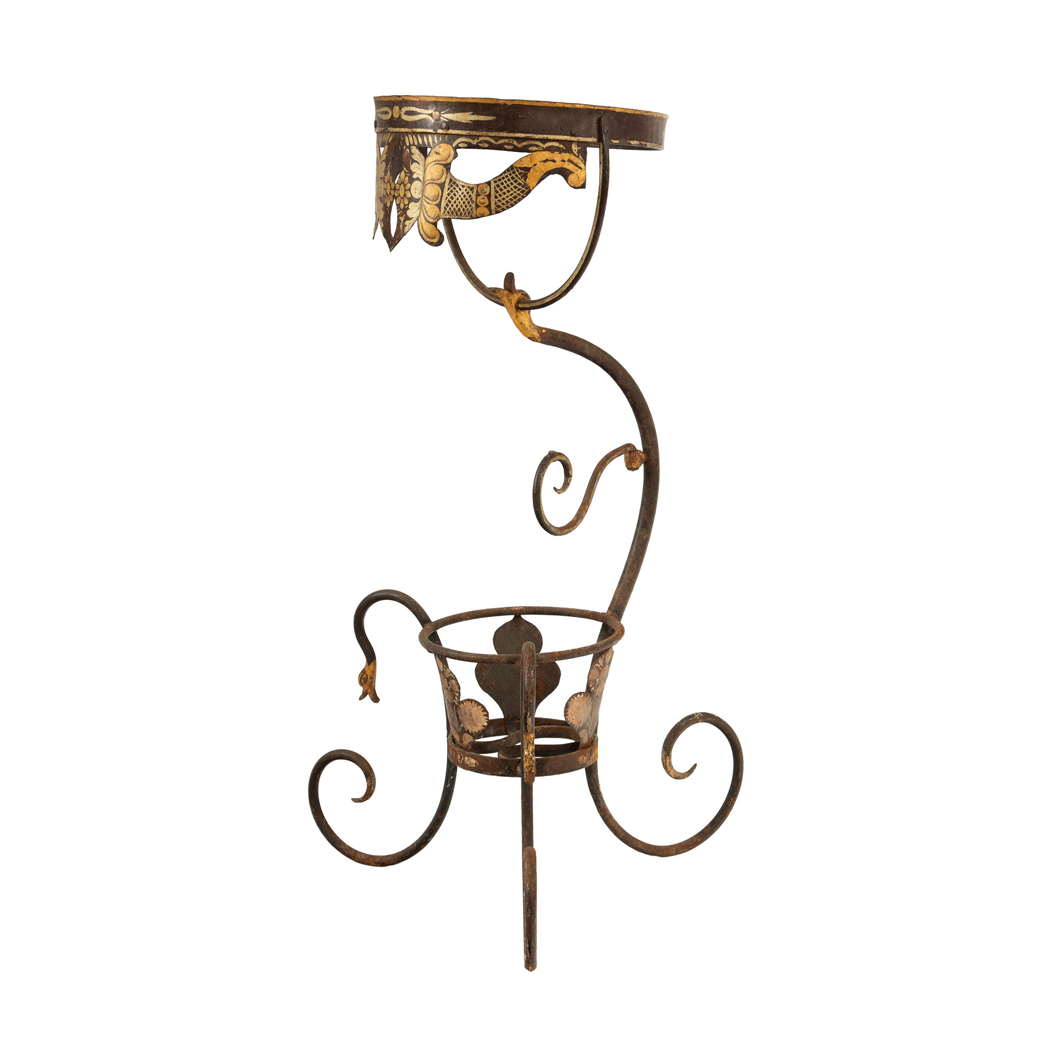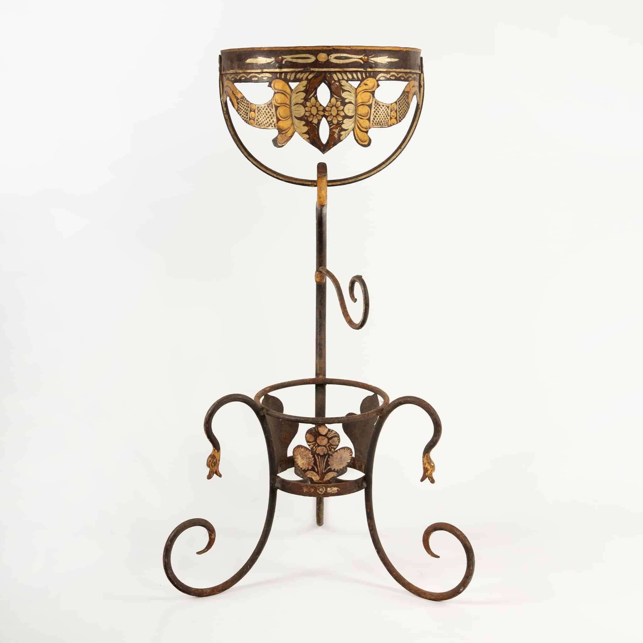 Antique Double-Tiered Tole-Painted Wrought Iron Plant Stand