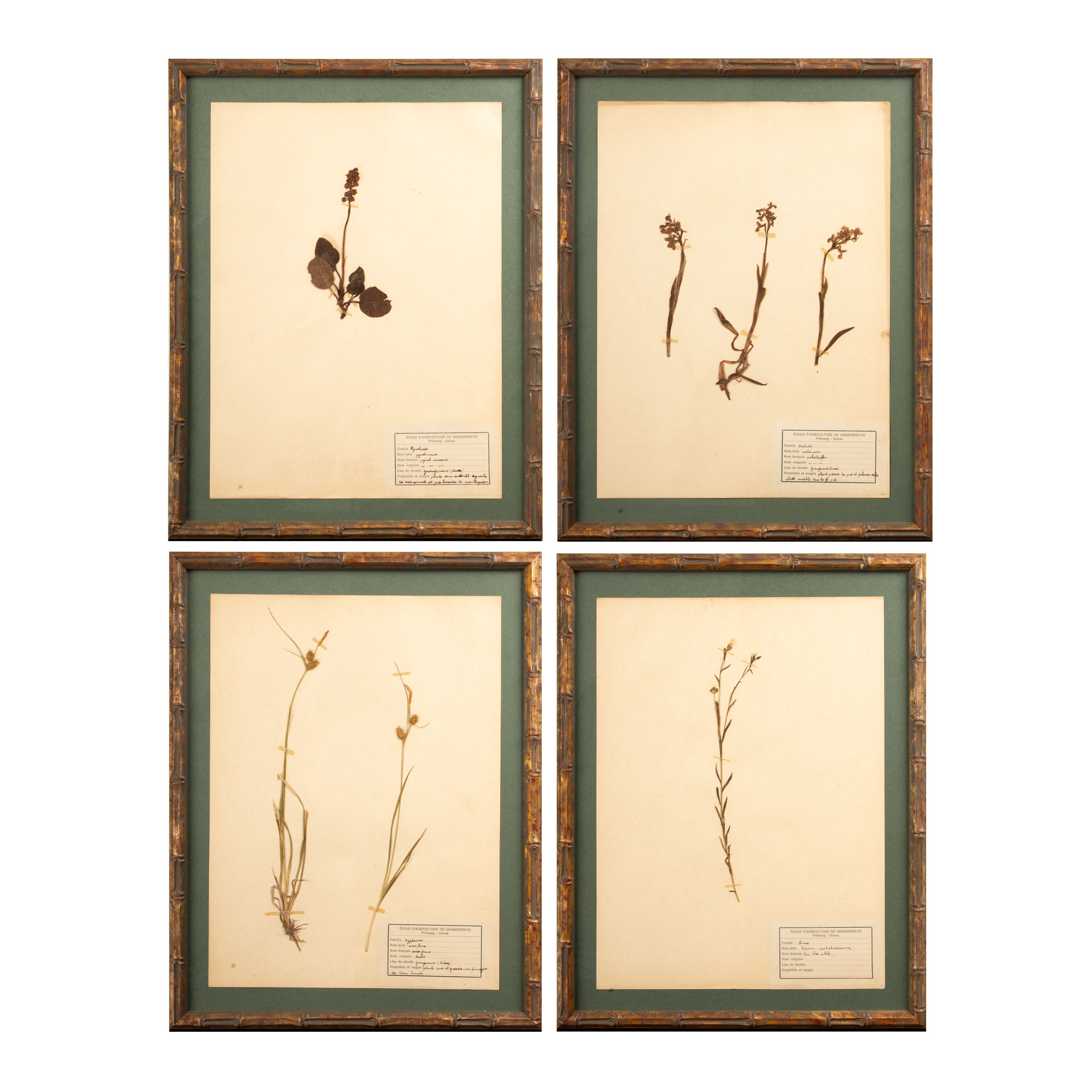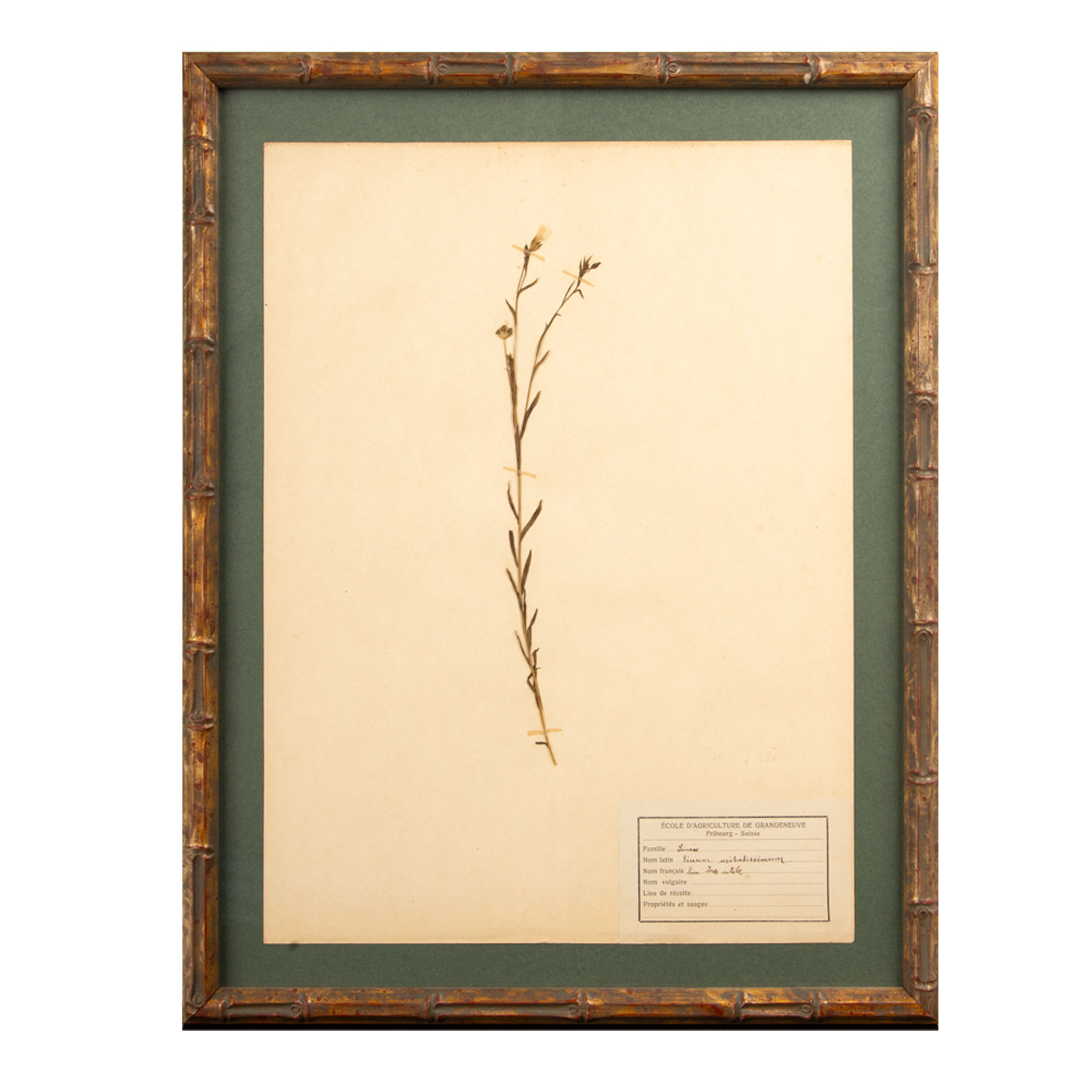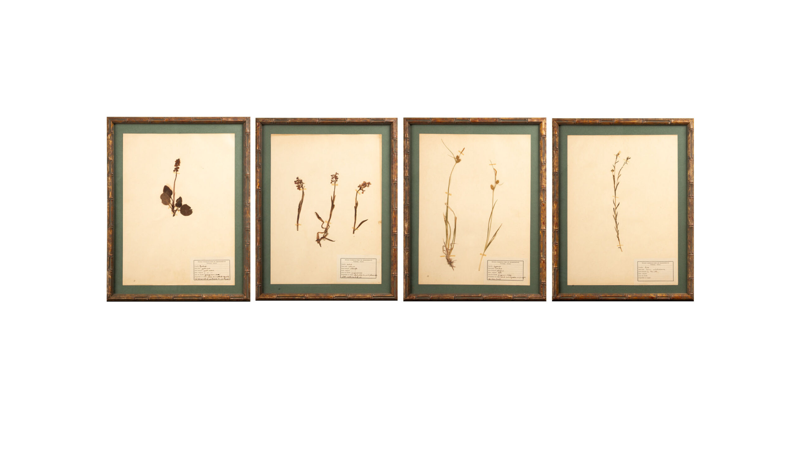 Bring a piece of history into your home with our set of four Gilt Framed Herbier Botanical Specimens from the 19th Century. Each framed piece is 14" x 0.75" x 18" H and is a testament to the popular pastime of collecting herbier (Plant specimens) among affluent Europeans in the late 19th century. These specimens were collected, dried, pressed, and mounted with the original paper strip mounts, with the names of the plants either written on the sheet or on an attached label. The gilt frames add a touch of sophistication and elegance to these unique and rare pieces. These botanical specimens are not only visually stunning, but also serve as a reminder of a bygone era and the beauty of nature.