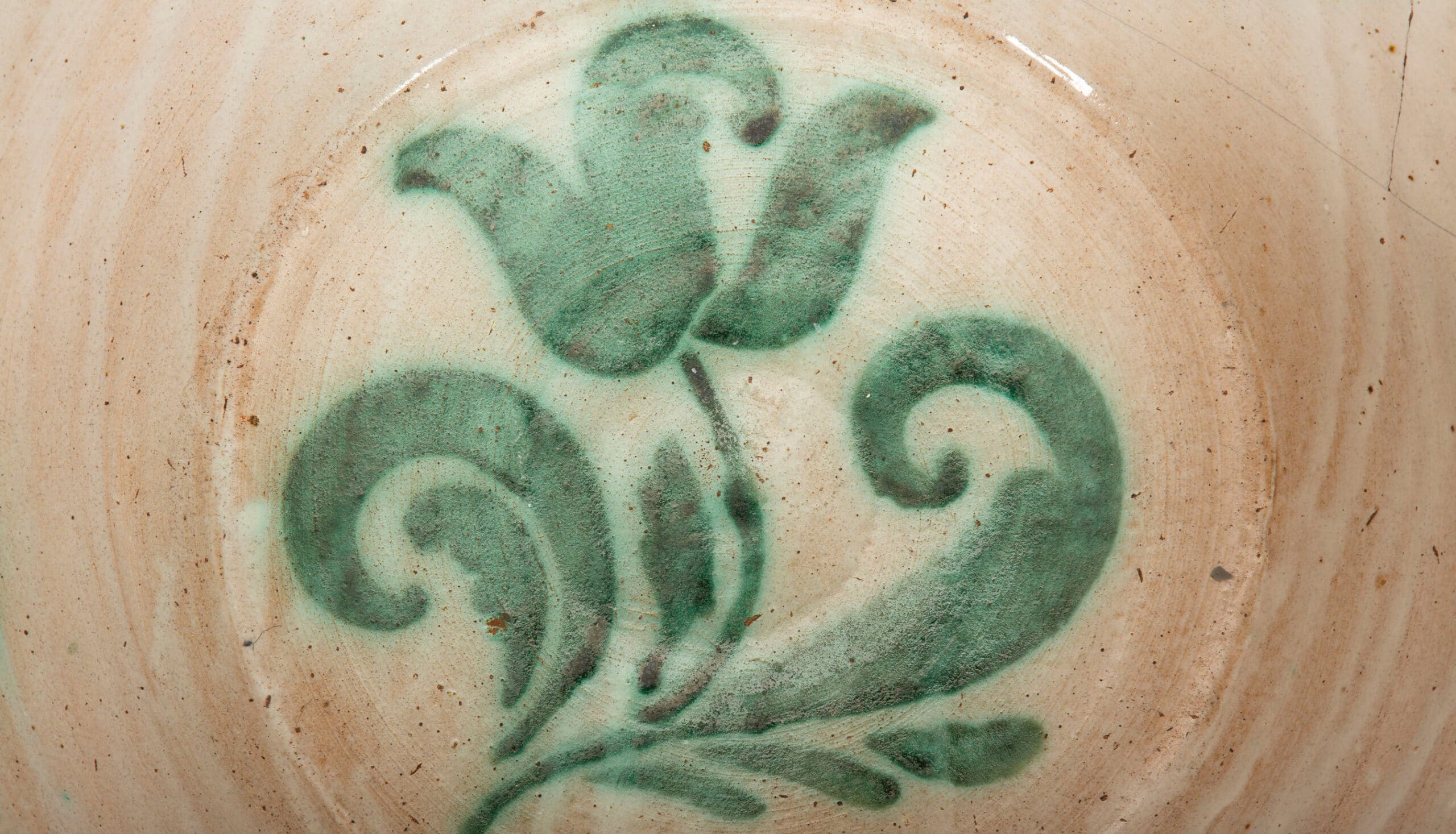 Fajalauza lebrillos were valued possessions, often passed down through generations and repaired rather than discarded; damage was traditionally mended by a specialist lañador using molten tin, repairs now prized by collectors. This example is in good overall condition, with slight fading to the decoration consistent with age. The forged metal display stand is included in the price.