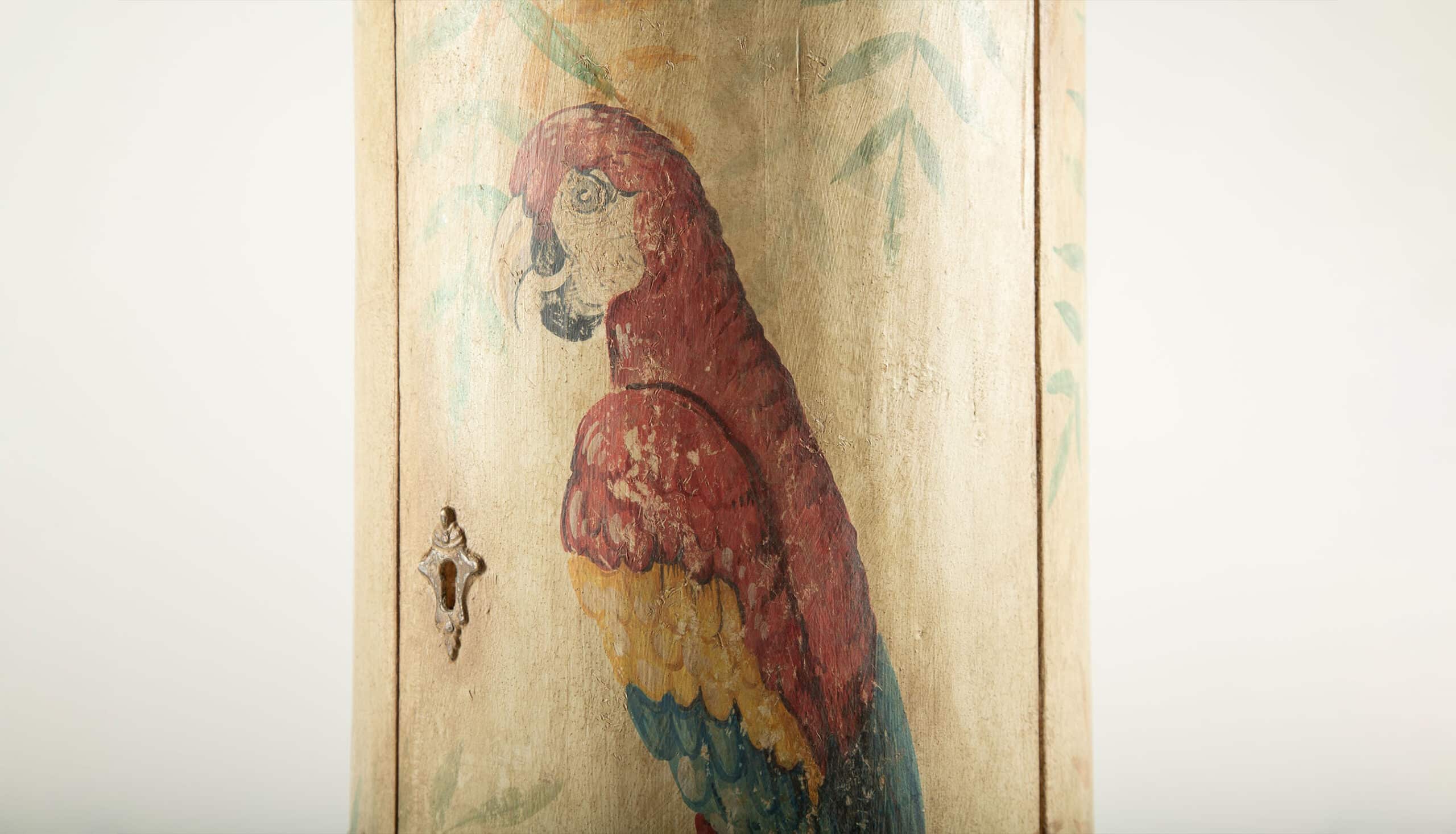 Pair of Venetian Polychrome Pedestal-Cabinets with Parrots, late 18th Century