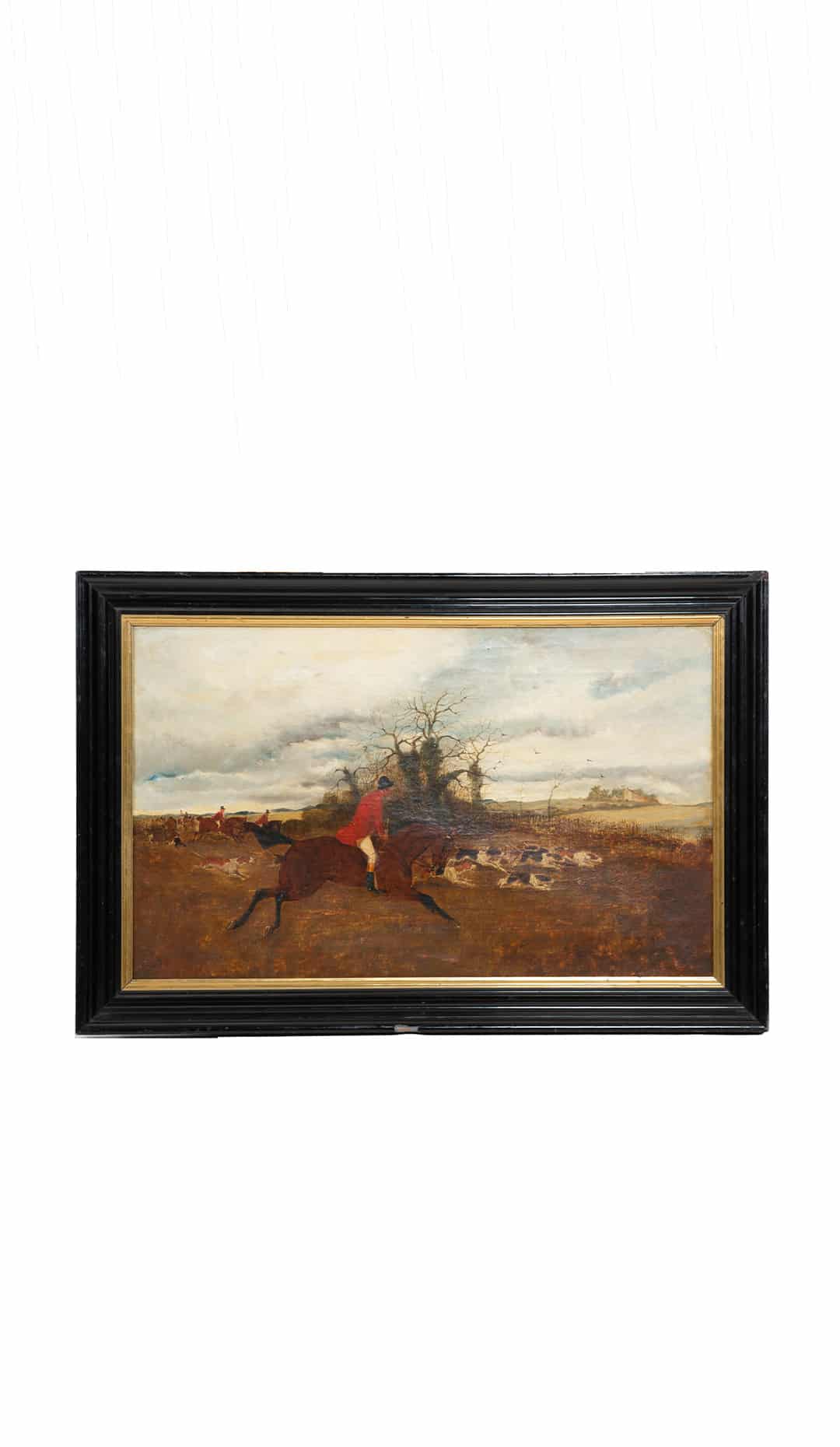 Red Coats and Rolling Skies: 19th Century English Oil on Canvas of a Fox Hunt