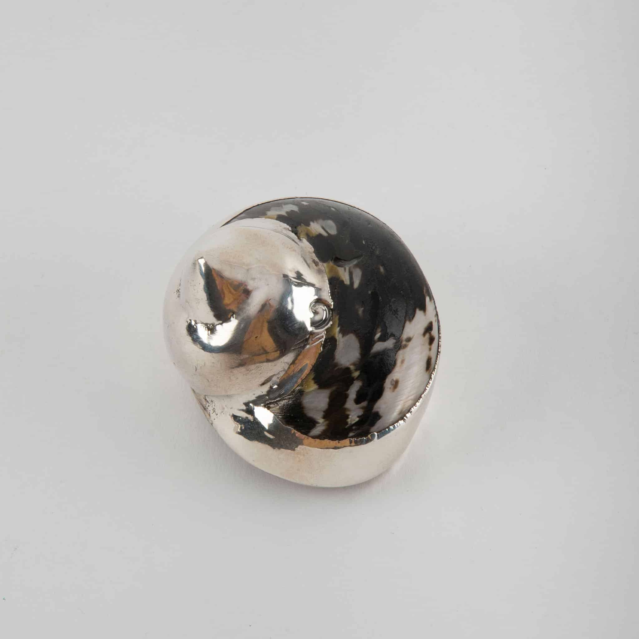 Made from natural shell. Each shell is unique. Creel and Gow has been working with the same atelier in Rome, Italy for over 20 years to make our signature silvered shells. Our workshop has been operated by the same family for generations. For decades, this family has also done restoration work on silver pieces for the Vatican.