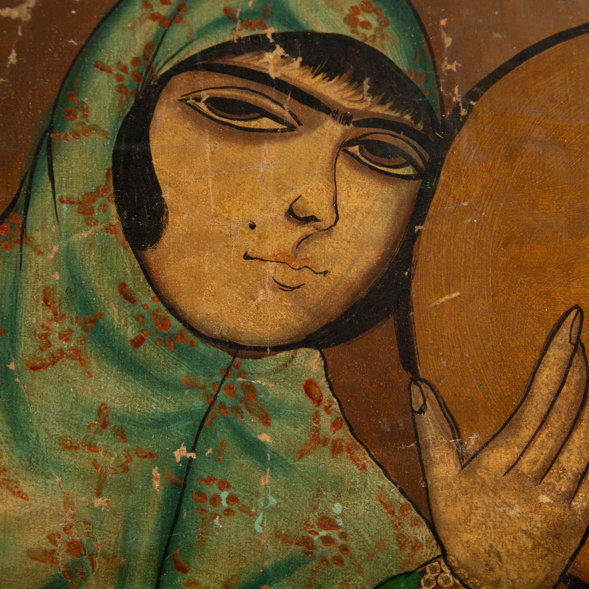 Qajar School Portrait of a Woman with Tambourine, Iran, Early 20th Century