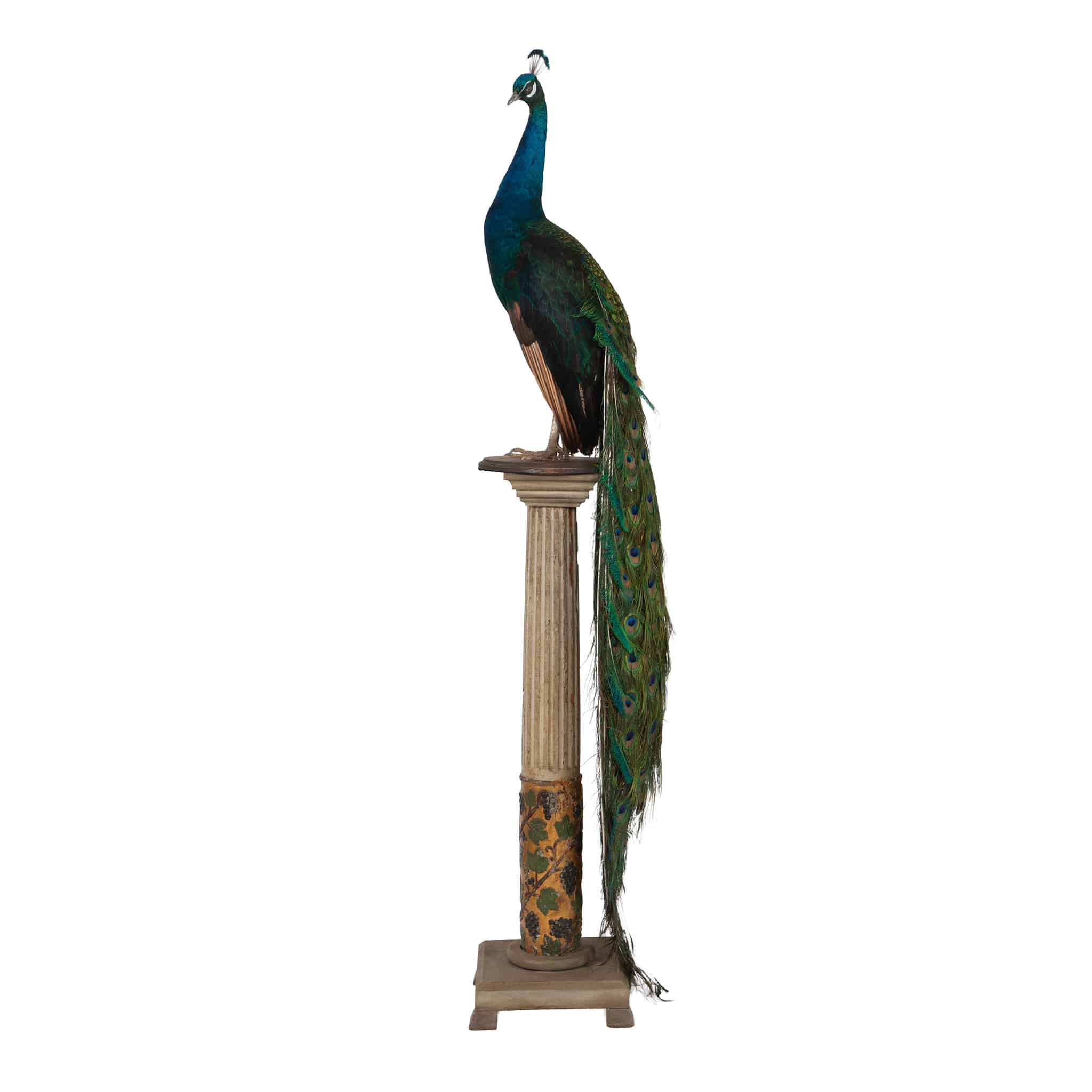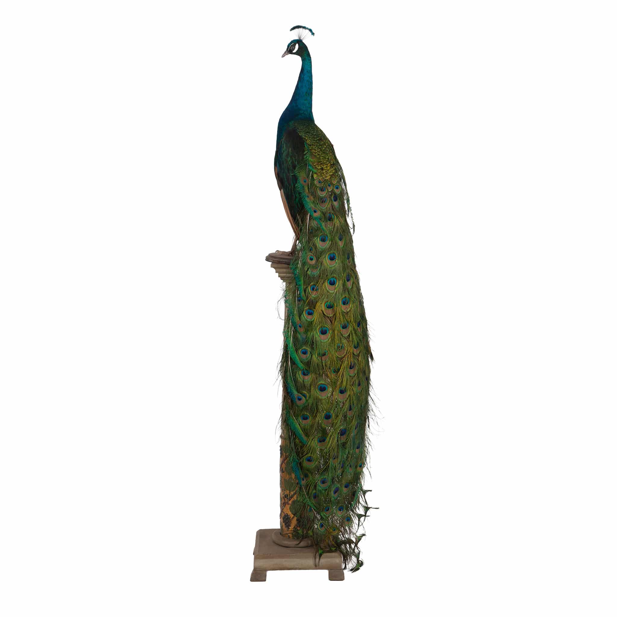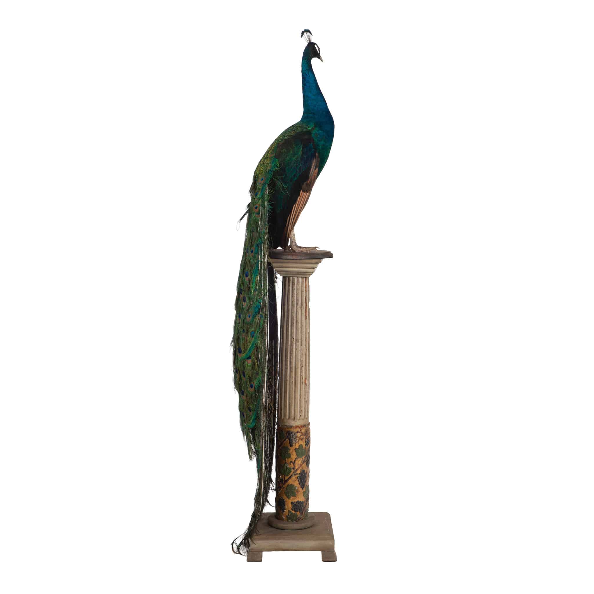 Long associated with royalty, protection, and renewal, the peacock holds deep symbolic significance in both Eastern and Western traditions. This example combines natural beauty, cultural resonance, and refined craftsmanship, making it a distinguished addition to any curated interior or collection.