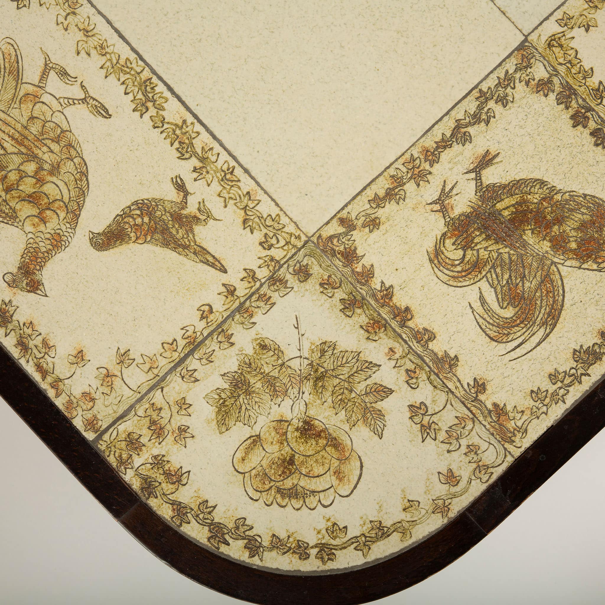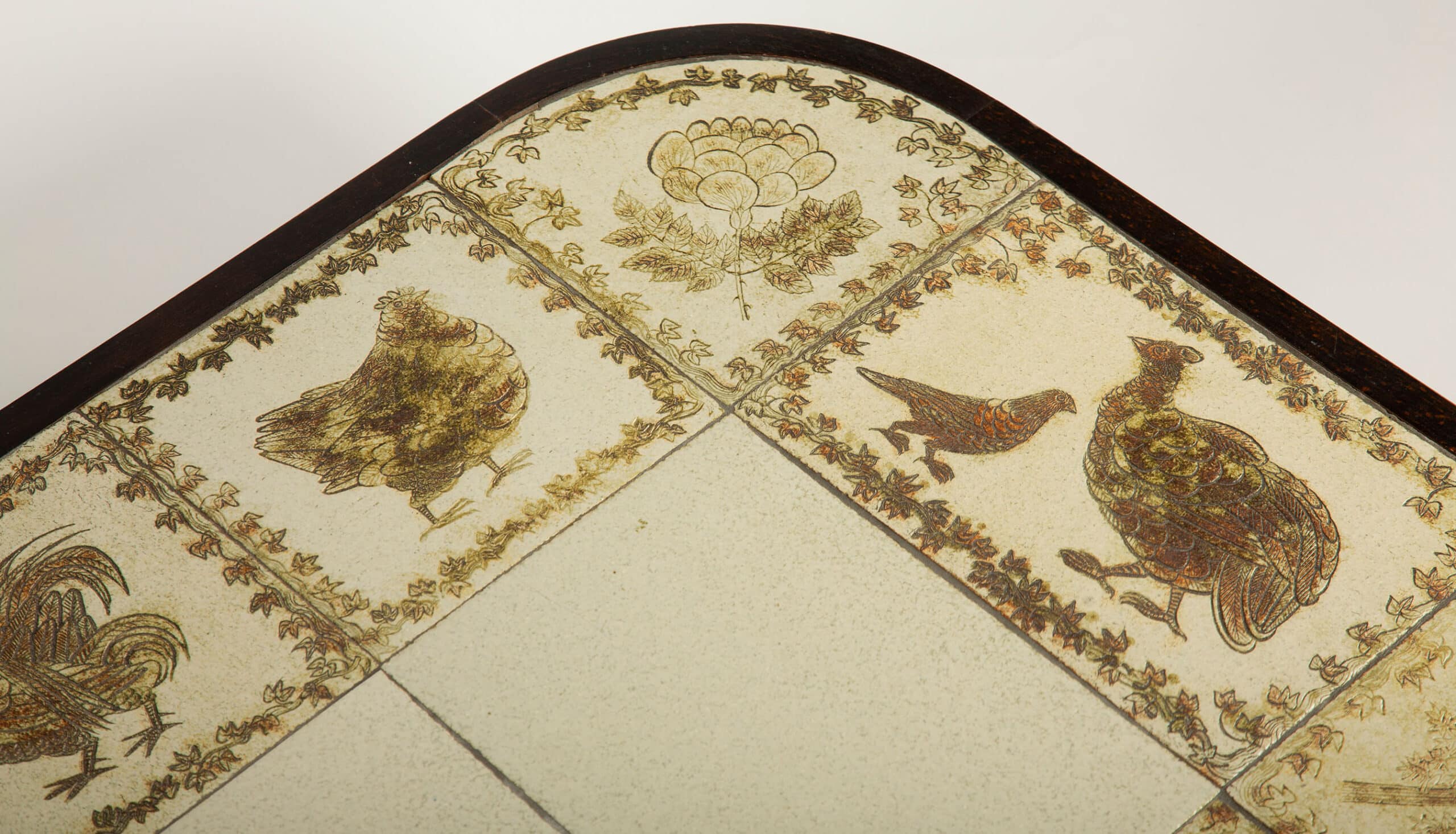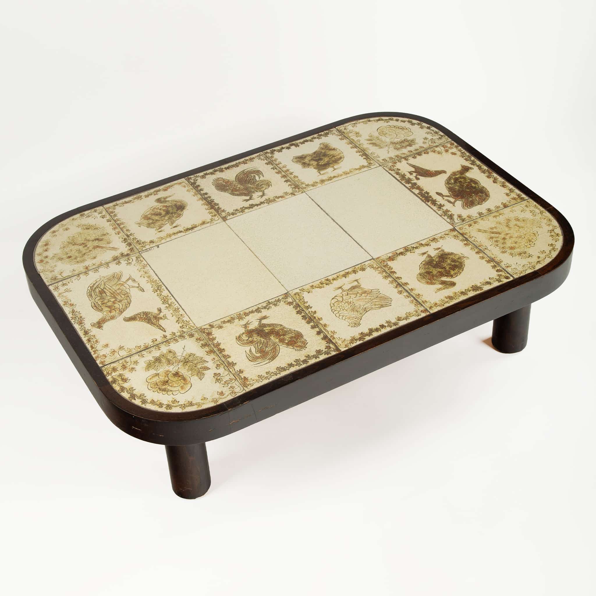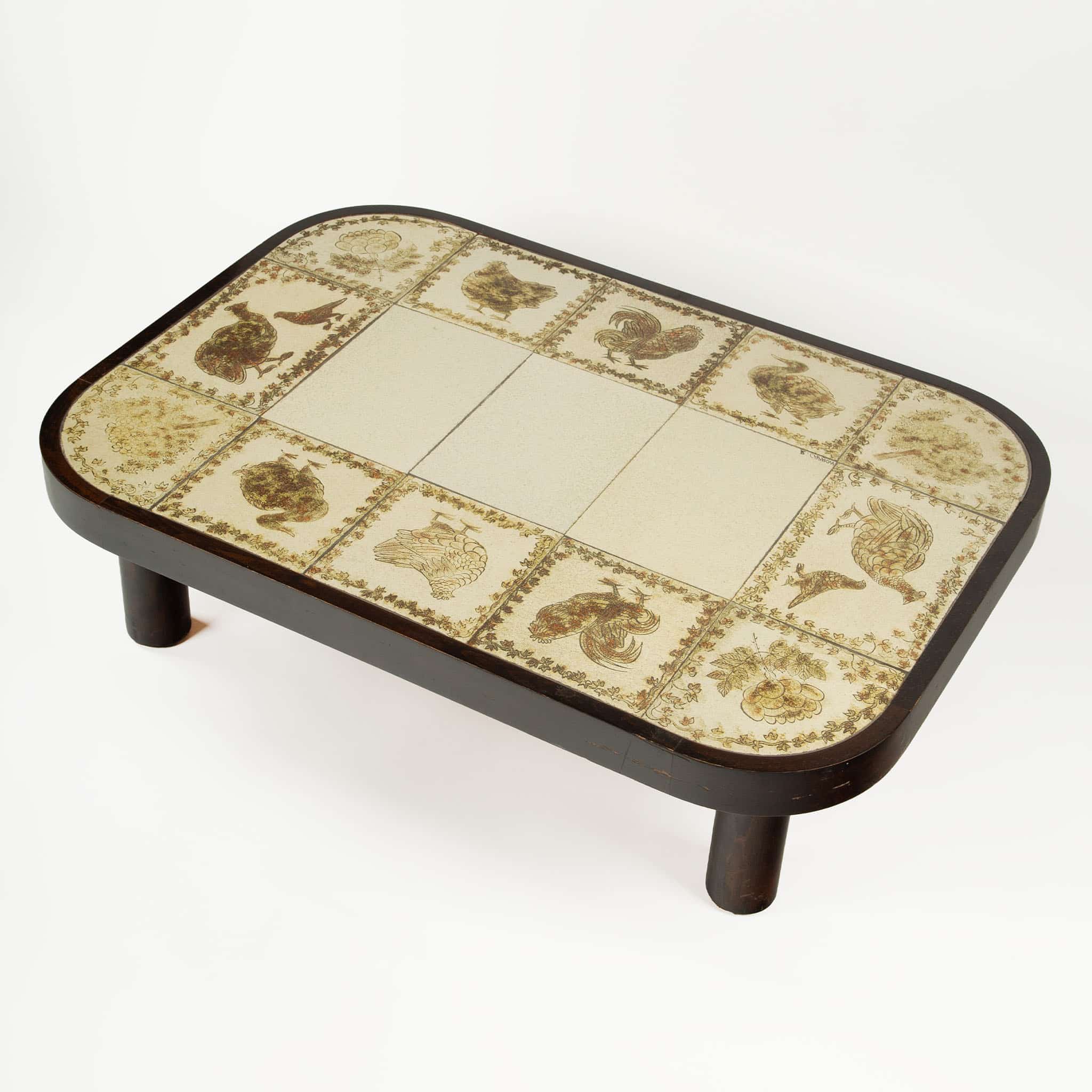 Roger Capron, Mid-20th C. Coffee Table with Glazed Ceramic Bird and Floral Tiles