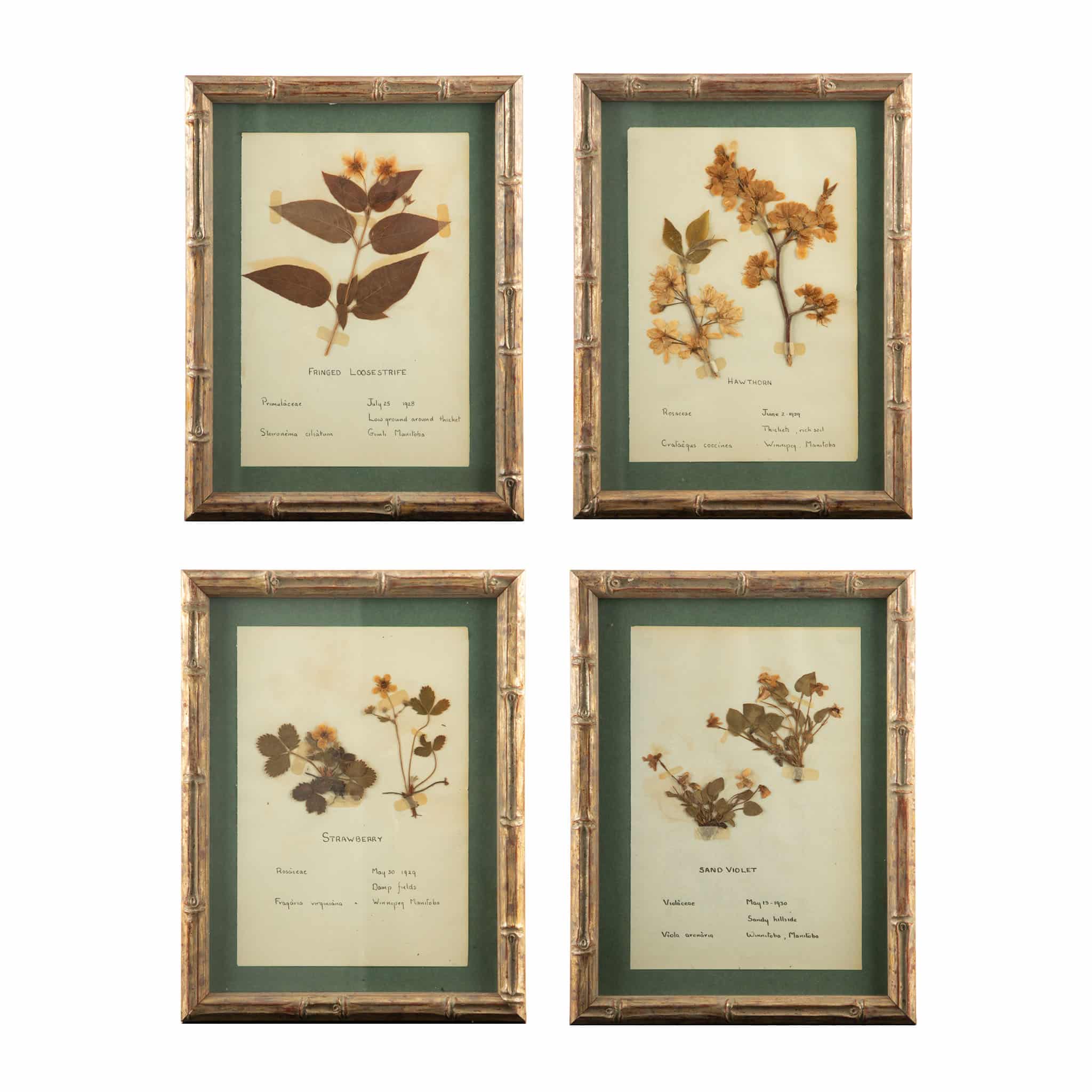 Framed and Pressed 19th century "Herbier" Botanical Specimens 8" x 0.75" x 10.5" each. Sold as set of 4.